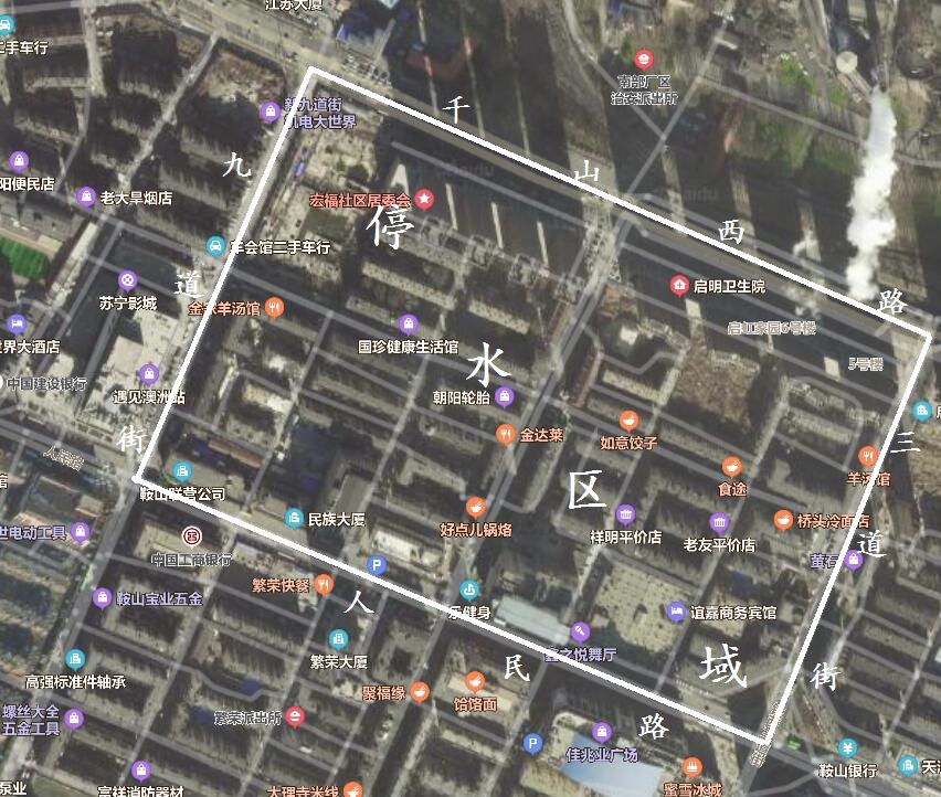 鐵西九道街以東、千山西路以南、三道街以西、人民路以北區域。