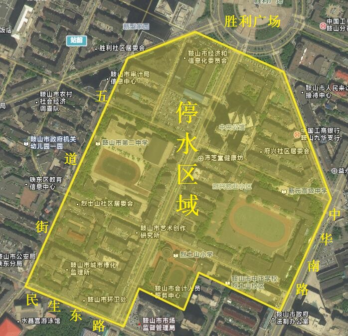 鐵東五道街以東、勝利廣場(chǎng)以南、中華南路以西、民生東路以北區域。
