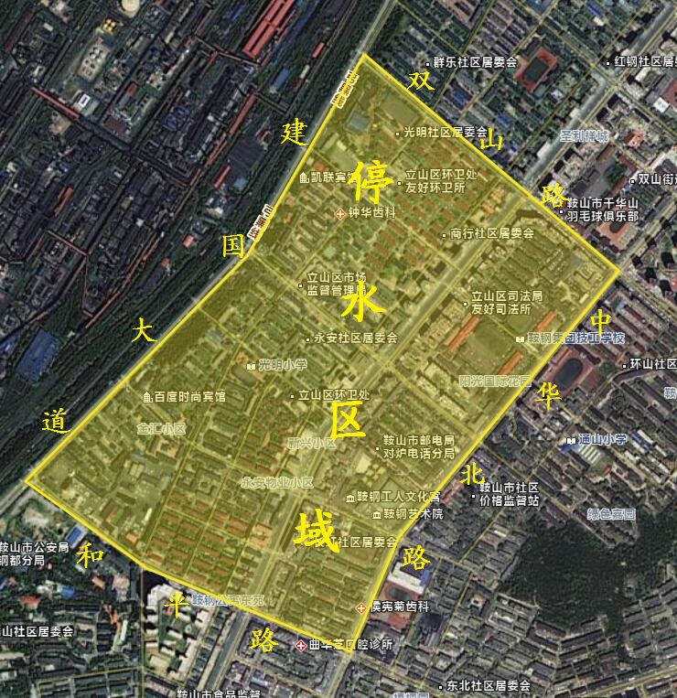 建國大道以東、雙山路以南、中華北路以西、和平路以北區域。