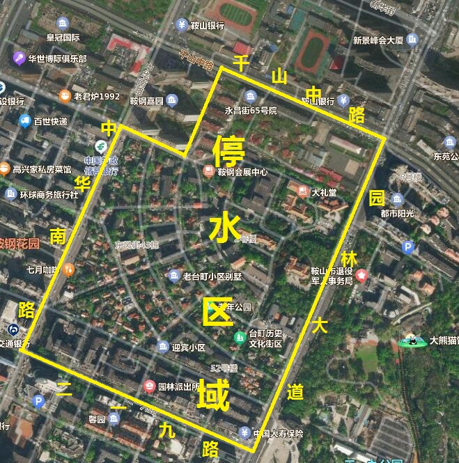 中華南路以東、千山中路以南、園林大道以西、二一九路以北(不含鞍鋼嘉園)區域停水。