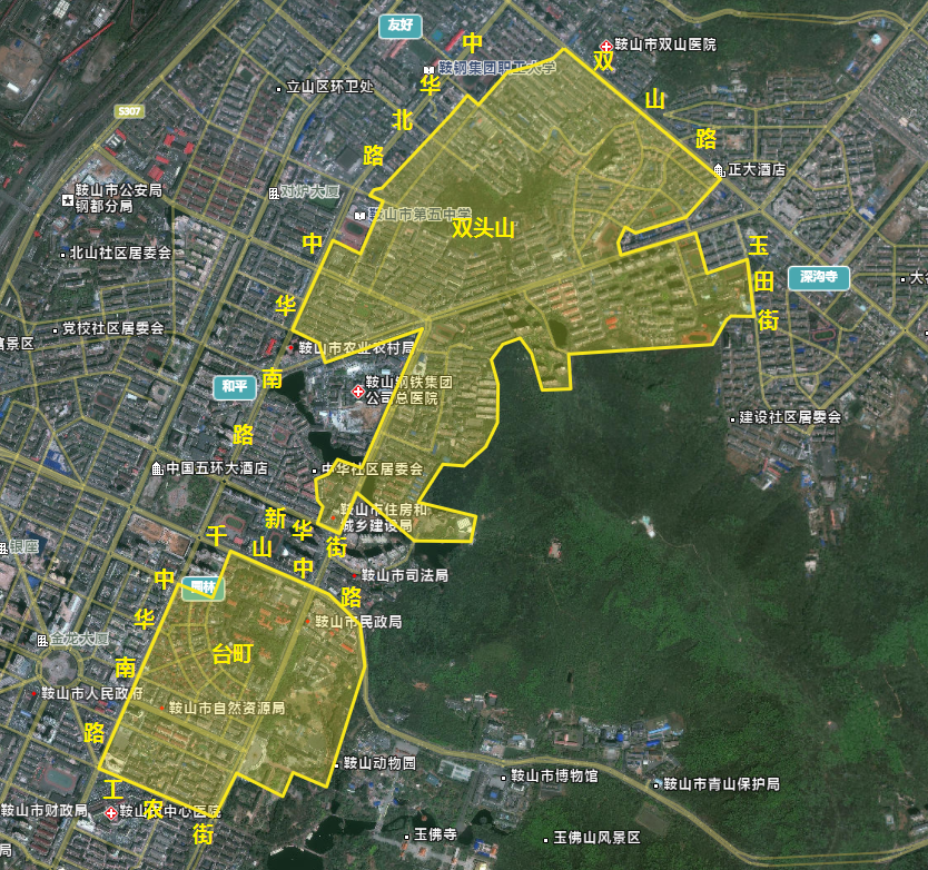 1、臺町附近區域:鐵東中華南路以東、千山中路以南、玉佛苑以西、工農街以北區域;
