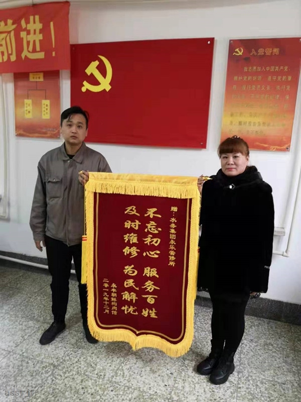 近日,水務(wù)集團鐵西自來(lái)水公司永樂(lè )所轄區內用戶(hù)張大姐專(zhuān)程贈送一面寫(xiě)有“不忘初心、服務(wù)百姓、及時(shí)維修、為民解憂(yōu)”字祥的錦旗。上個(gè)月,抄表員發(fā)現此戶(hù)用水量突增,疑似漏水,聯(lián)系維修人員來(lái)到現場(chǎng)勘察,排查發(fā)現表后漏水,并且歸個(gè)人維修。維修人員心系群眾,義務(wù)幫助用戶(hù)更換了PPR管,解決了漏水問(wèn)題。用戶(hù)為了表達謝意送來(lái)錦旗,衷心感謝永樂(lè )所職工為百姓辦實(shí)事、解難題。