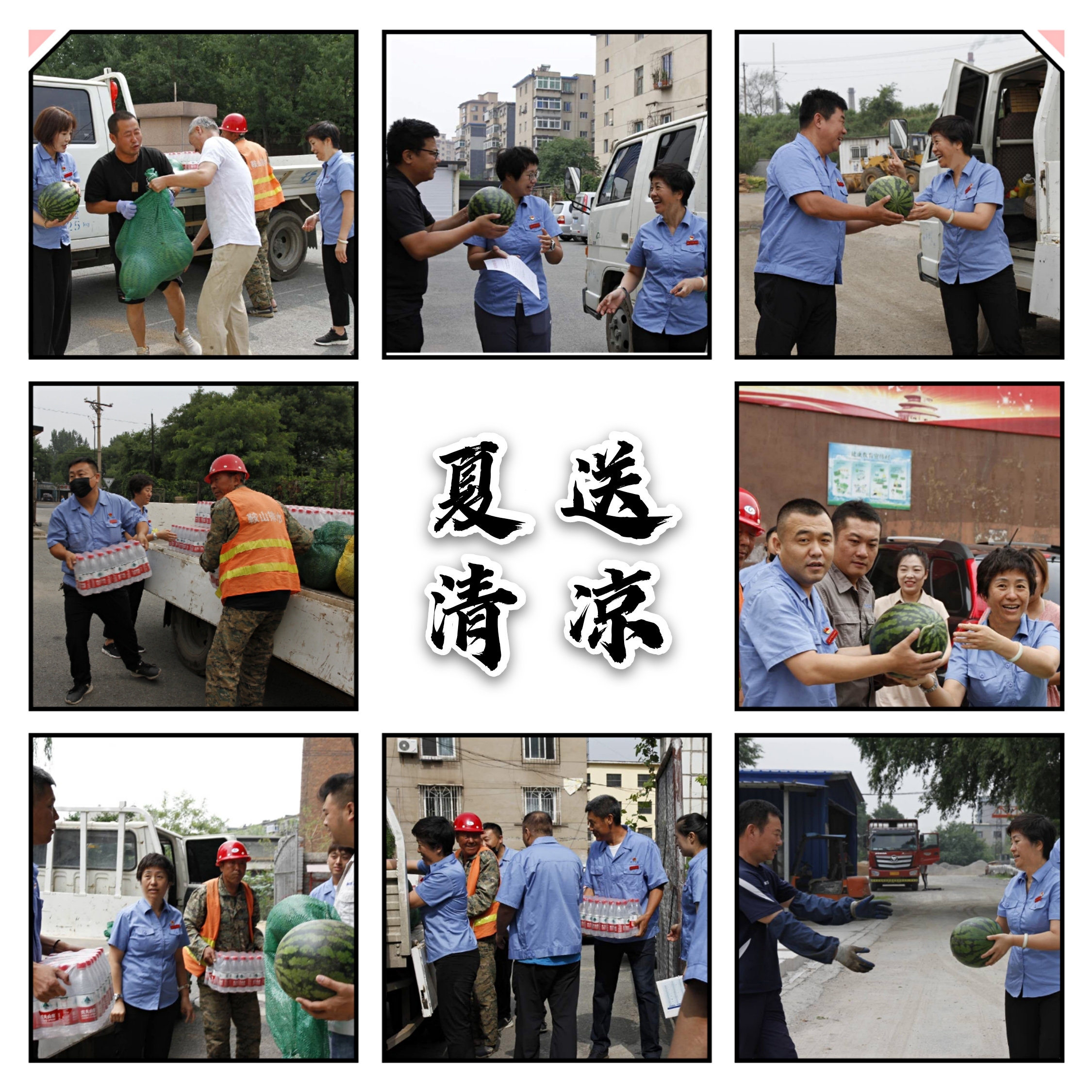 “夏送清涼,冬送溫暖”慰問(wèn)活動(dòng)是水務(wù)集團排水公司的一個(gè)好傳統。7月10日上午,排水公司工會(huì )來(lái)到排水公司鐵東、鐵西、立山管修分公司等八個(gè)基層單位進(jìn)行慰問(wèn),向在高溫天氣下堅守工作崗位的一線(xiàn)職工們表示感謝,并把西瓜、礦泉水等防暑慰問(wèn)品送到職工手中,為奮戰在一線(xiàn)的干部職工送去組織的關(guān)懷和問(wèn)候。