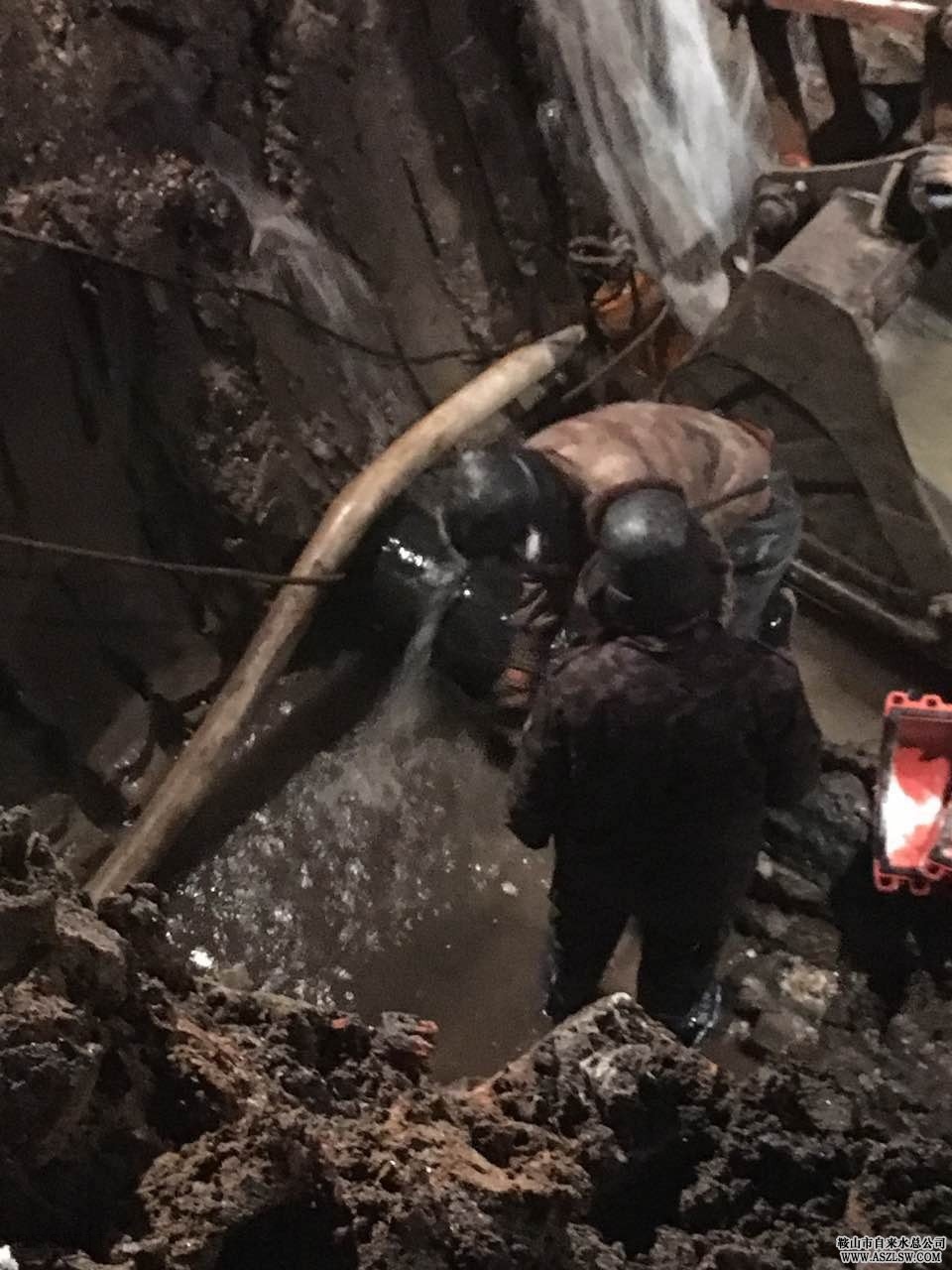 事件發(fā)生后,總公司馬上啟動(dòng)應急預案,總公司主要領(lǐng)導和分管領(lǐng)導親臨現場(chǎng)指揮。與此同時(shí),鐵東公司、工程公司、安寧水表查漏隊組織起50余名相關(guān)搶修技術(shù)人員和10余臺大型搶修車(chē)輛、設備趕赴現場(chǎng)搶修。管線(xiàn)爆裂處位于舊堡東礦區建筑土層下,由于管線(xiàn)上面覆蓋有6米厚的回填土,加之原來(lái)正常的2米埋深,管線(xiàn)在該處的埋深達到了8米之多,給查漏工作帶來(lái)了相當大的難度。管道維修公司搶修隊隊員采取機械挖掘、人工輔助、輪班輪崗、不間斷開(kāi)挖的方式,踏著(zhù)冰冷的泥水,頂著(zhù)寒風(fēng)緊張作業(yè)。為擴大查漏范圍,搶修人員對幾個(gè)疑是漏點(diǎn)的地方進(jìn)行擴挖,由于作業(yè)坑內全是積水,抽水工作也同步進(jìn)行。經(jīng)過(guò)現場(chǎng)多個(gè)部門(mén)通力合作,反復測試和查驗,終于在12日下午16時(shí),將漏點(diǎn)鎖定。在經(jīng)歷了一個(gè)多小時(shí)搶修后,最終將漏水修復。