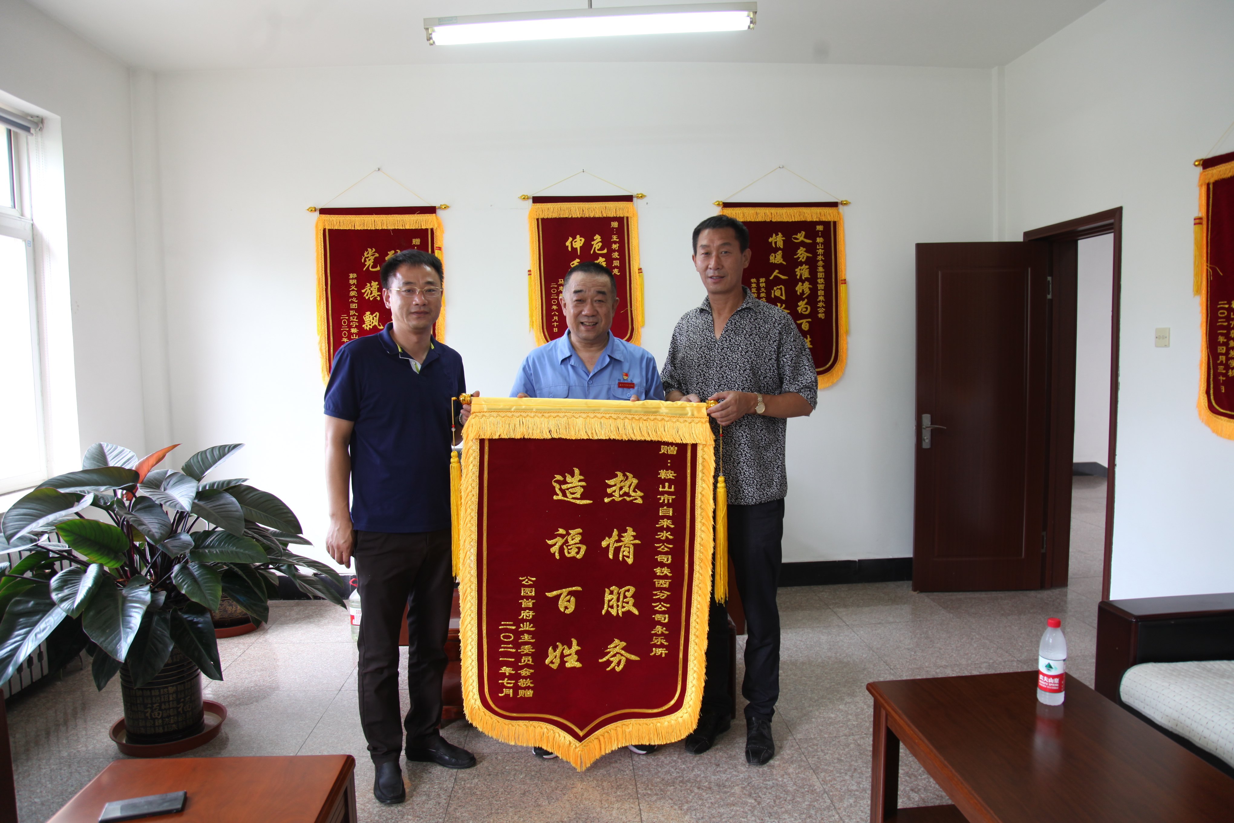 7月14日上午,公園首府小區兩位用戶(hù)將一面寫(xiě)有“熱情服務(wù) 造福百姓”的錦旗送到水務(wù)集團鐵西公司黨總支書(shū)記王樹(shù)波手中,對鐵西公司永樂(lè )所維修人員優(yōu)質(zhì)、高效、熱情的服務(wù)態(tài)度表示衷心感謝,對永樂(lè )所勇于擔當社會(huì )責任、樂(lè )于奉獻的服務(wù)精神給予高度贊揚。