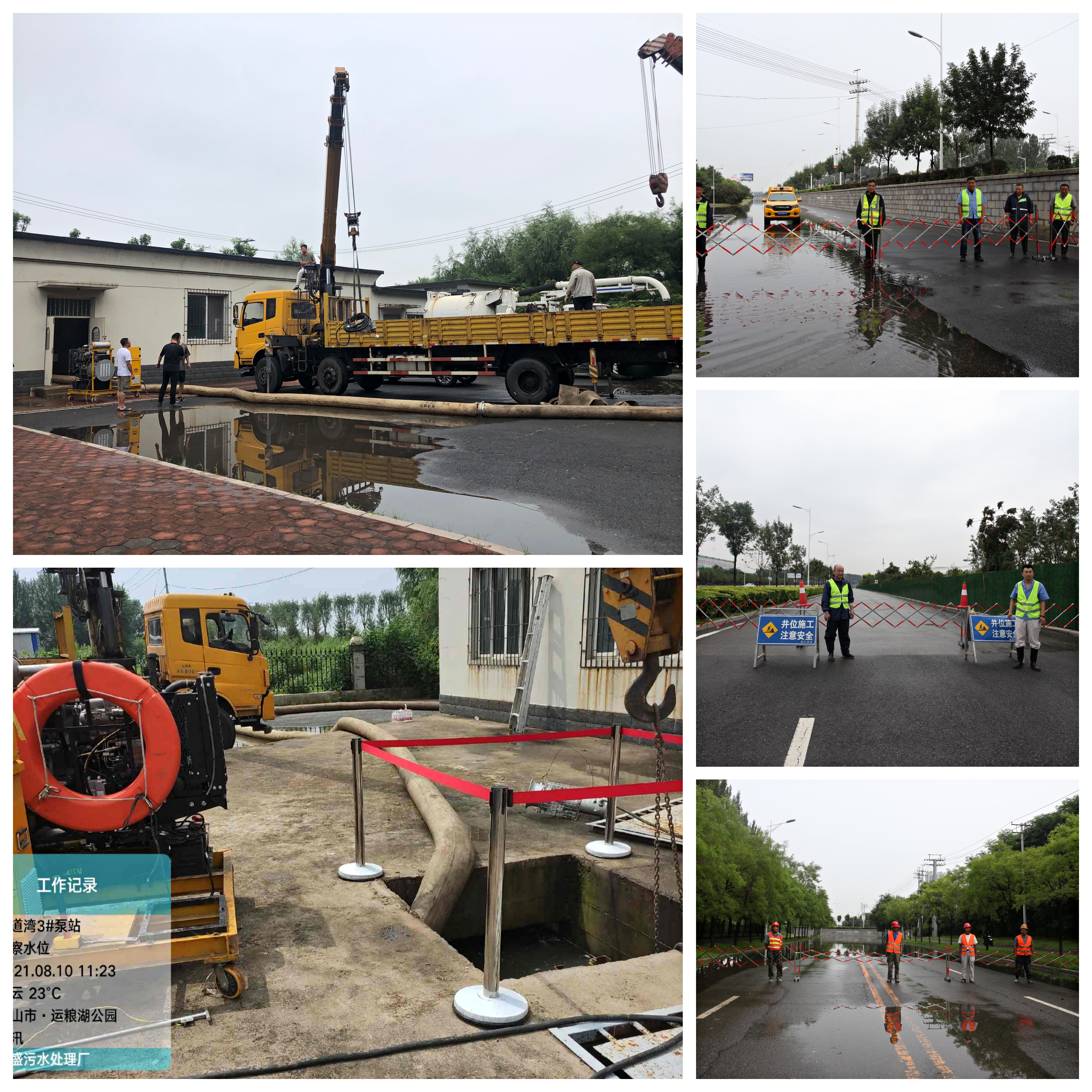 在雨情來(lái)臨前,豐盛污水處理廠(chǎng)提前準備,將各泵站蓄水池水量降到最低,并通過(guò)防汛監控系統實(shí)時(shí)監測城區各橋涵積水情況,根據雨勢大小及時(shí)開(kāi)泵抽水,確保雨水快速排出。降雨當日,由于電業(yè)局線(xiàn)路出現故障造成達道灣3號泵站停電,站內5臺水泵無(wú)法正常運轉,造成泵房?jì)瘸霈F深度1.4米積水,部分道路、橋涵產(chǎn)生積水。面對緊急情況,公司迅速啟動(dòng)應急預案,對積水的道路、橋涵進(jìn)行封閉。市政府、市住建局及集團相關(guān)領(lǐng)導第一時(shí)間抵達現場(chǎng),組織搶修人員借助柴油發(fā)電機泵、水帶等設備迅速開(kāi)展搶修。中午12時(shí)30分,經(jīng)多方協(xié)調溝通電業(yè)局恢復供電,達道灣3號泵站水泵陸續恢復啟動(dòng),積水全部排除。此次強降雨考驗,集團200余人堅守防汛一線(xiàn),出動(dòng)防汛車(chē)輛、設備30臺。在全體工作人員的共同努力下,至10日中午11時(shí),積水已基本退去,城區道路均未出現長(cháng)時(shí)間大面積積水現象。