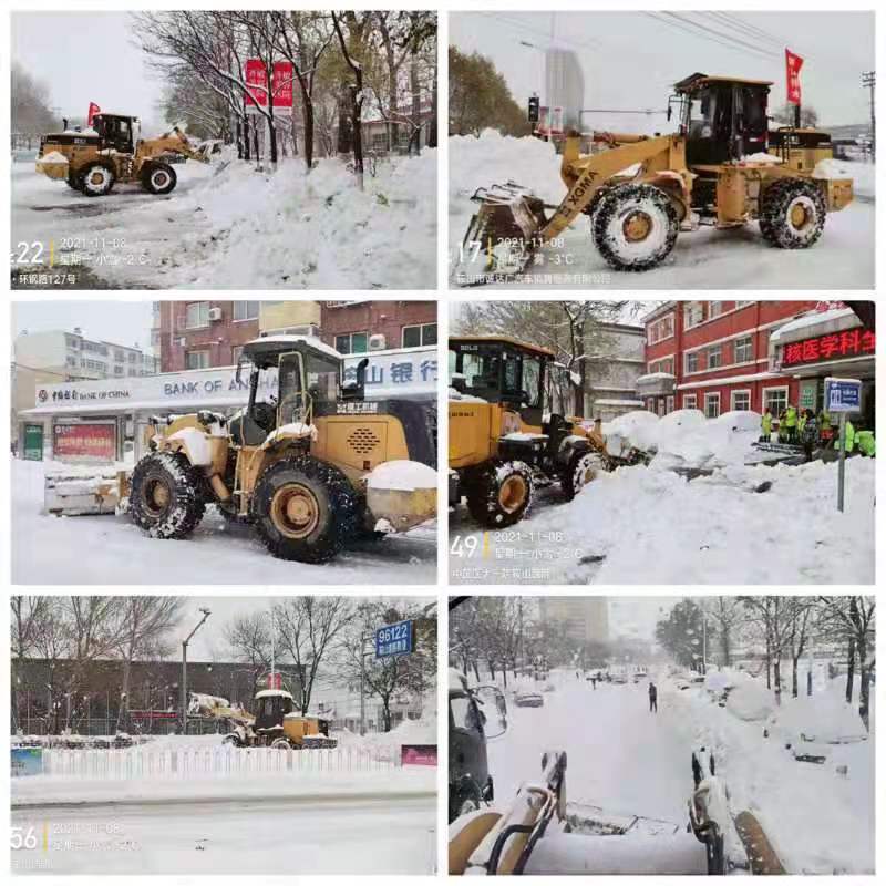 7日當晚,大雪未停,寒風(fēng)凜冽,室外溫度低至零下五度,公司派出員工六名、出動(dòng)鏟車(chē)六輛,兵分幾路奔赴至千山西路、五一立交橋、人民路等主干道路段,弛援鐵西環(huán)衛開(kāi)展城市除雪工作。除雪同志頂嚴寒冒風(fēng)雪,先將積雪融化防止道路結冰,再采用“人工和機械作業(yè)相結合”方式,邊下雪邊清除,用鏟車(chē)鏟出了一條條道路,保證了基本交通暢通。