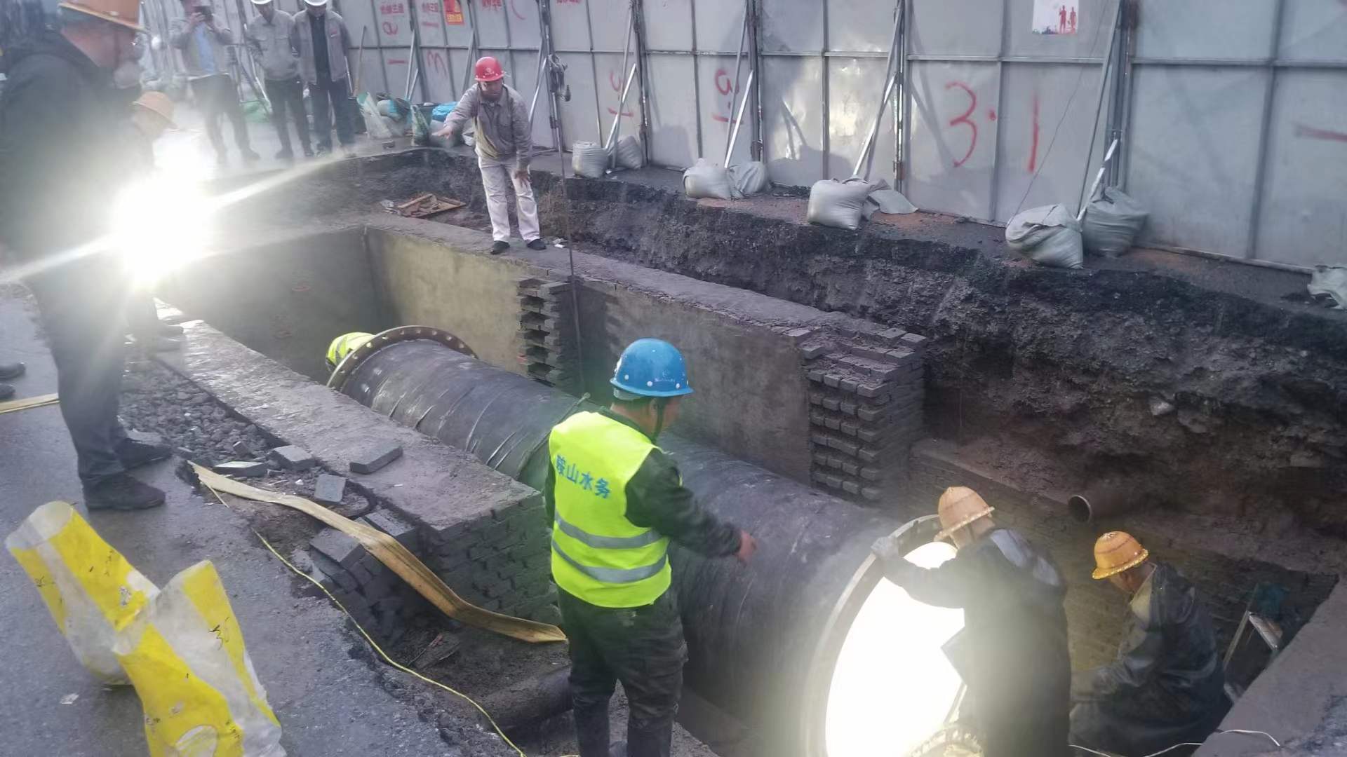 據統計,參與本次施工的總人數共150余人,配備發(fā)電車(chē)6臺、搶修發(fā)電車(chē)2臺、4寸污水泵30臺、10千瓦汽油發(fā)電機6臺、DN200mm水泵2臺、DN100mm水泵1臺、霧炮車(chē)6臺、灑水車(chē)1臺及其他應急車(chē)輛設備。經(jīng)過(guò)全體工作人員的共同努力,在確保安全、保證質(zhì)量的前提下,順利完成了加裝DN1200電池流量計2臺、水表前段更換10m鋼制管線(xiàn)、接點(diǎn)3處、拆除DN1200球墨鑄鐵管10m及鋪設D1220鋼管10米的全部工程任務(wù)。施工結束后做到場(chǎng)清料凈,得到了周?chē)罕姷囊恢潞迷u。