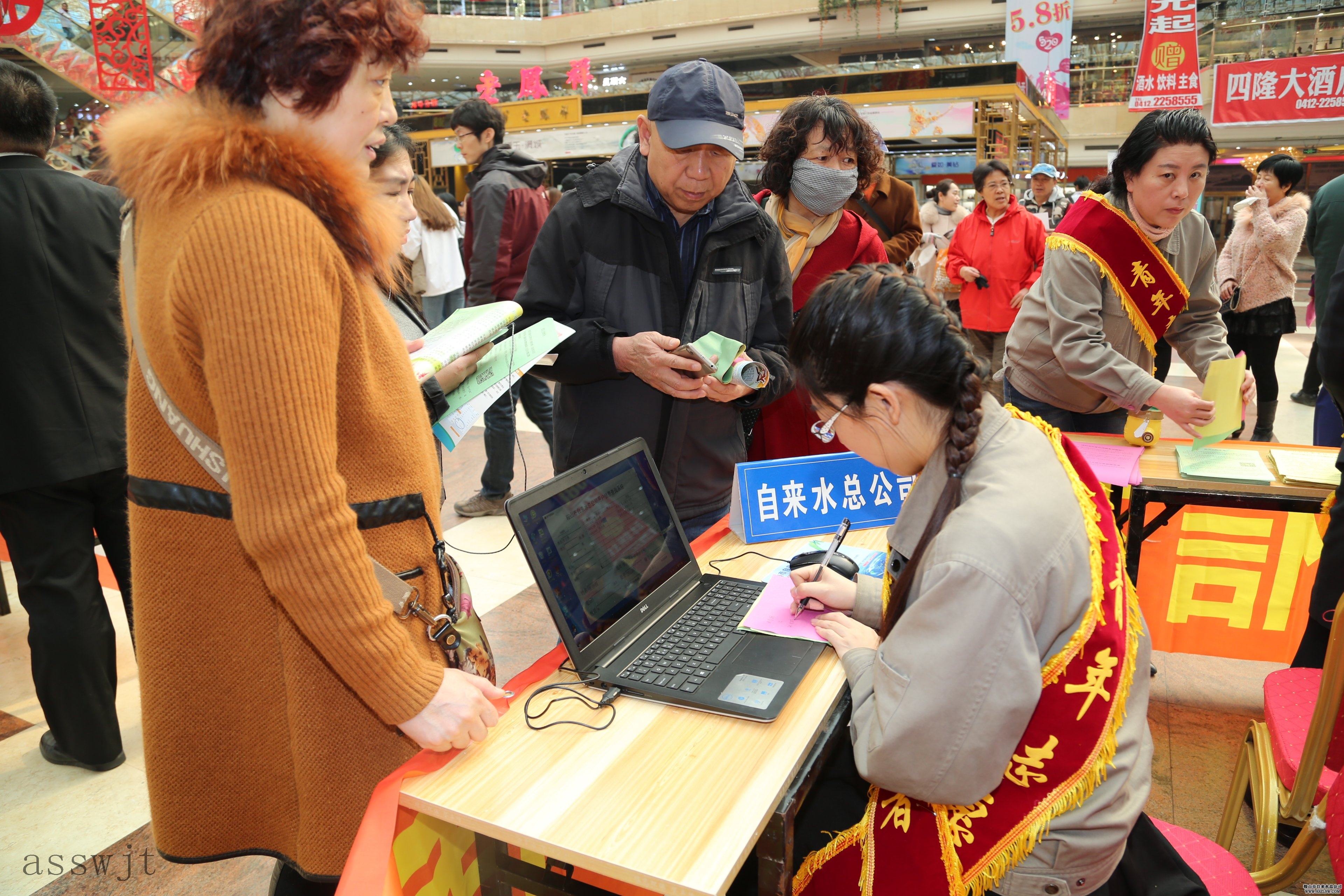 活動(dòng)現場(chǎng),水務(wù)集團自來(lái)水總公司工作人員在四隆廣場(chǎng)擺放展臺、設置展板,圍繞“網(wǎng)絡(luò )誠信·消費無(wú)憂(yōu)”主題向市民宣傳自來(lái)水微信平臺便民利民服務(wù)功能及相關(guān)用水常識,并解答市民的咨詢(xún)和提問(wèn)。