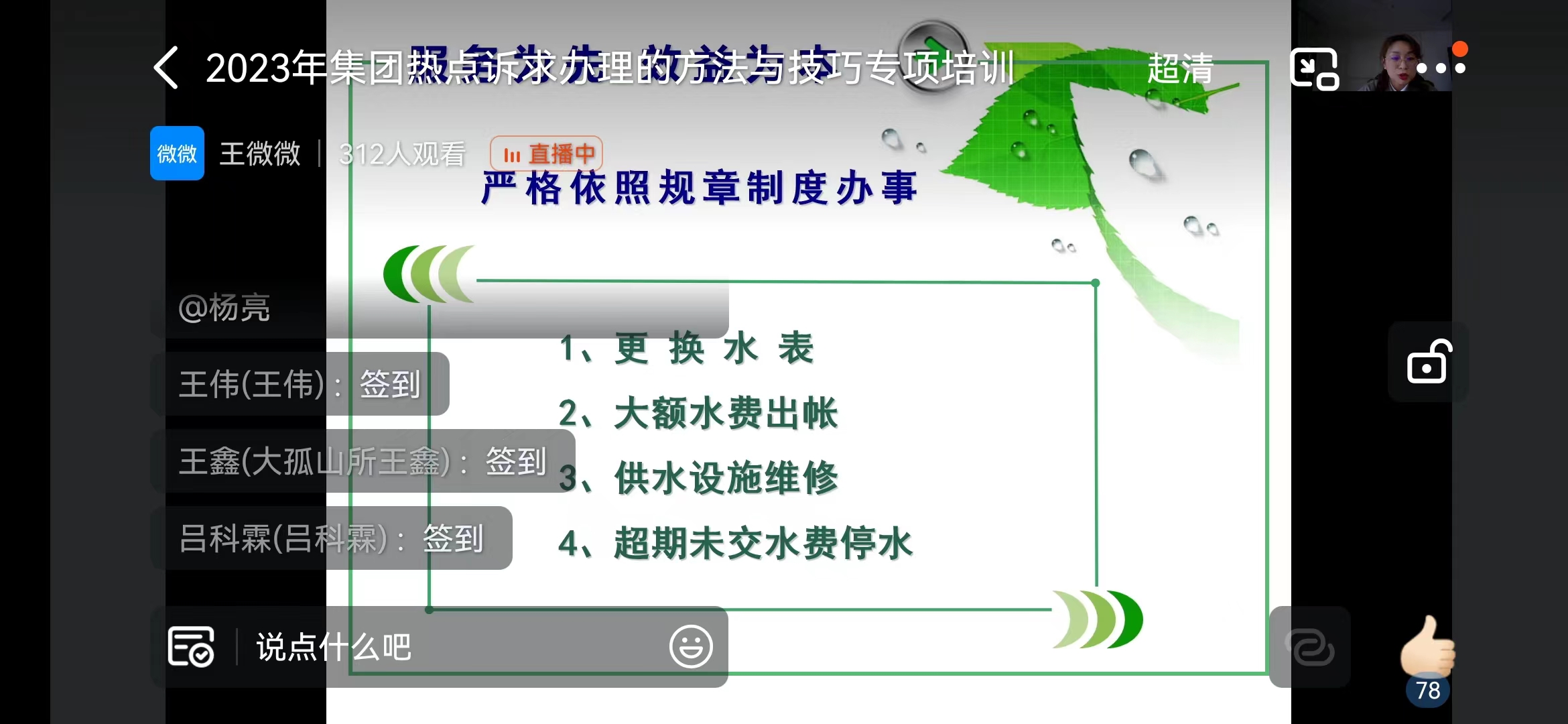 培訓主要圍繞訴求辦理環(huán)節、各類(lèi)熱點(diǎn)訴求解決方法、訴求辦理工作重點(diǎn)及投訴處理過(guò)程中存在的問(wèn)題進(jìn)行講解,通過(guò)大量詳實(shí)的案例幫大家掌握訴求處理技巧,以及在處理過(guò)程中所依據的條例、法規等,做到有法必依、按規辦事。培訓還強調,要樹(shù)立正確的訴求辦理心態(tài),各一線(xiàn)對外服務(wù)崗位要積極承擔起投訴處理的第一道防線(xiàn)責任,規范工作標準,主動(dòng)服務(wù)用戶(hù),促進(jìn)訴求辦理工作提質(zhì)增效。培訓結束后,參訓人員就日常工作中遇到的棘手問(wèn)題進(jìn)行了提問(wèn),張宇主任都給予一一解答。