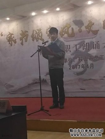 5月5日,朗誦大賽決賽在市總工會(huì )1號會(huì )議廳舉行,市國資委黨建工作處處長(cháng)李忠、自來(lái)水總公司黨委副書(shū)記、紀委書(shū)記、工會(huì )主席于慧才、副主席馬莉來(lái)到?jīng)Q賽現場(chǎng),最終李嘉暉不負眾望,在決賽中取得二等獎的好成績(jì),為市國資委和水務(wù)集團爭得了榮譽(yù),市國資委在此次大賽中榮獲了優(yōu)秀組織獎。