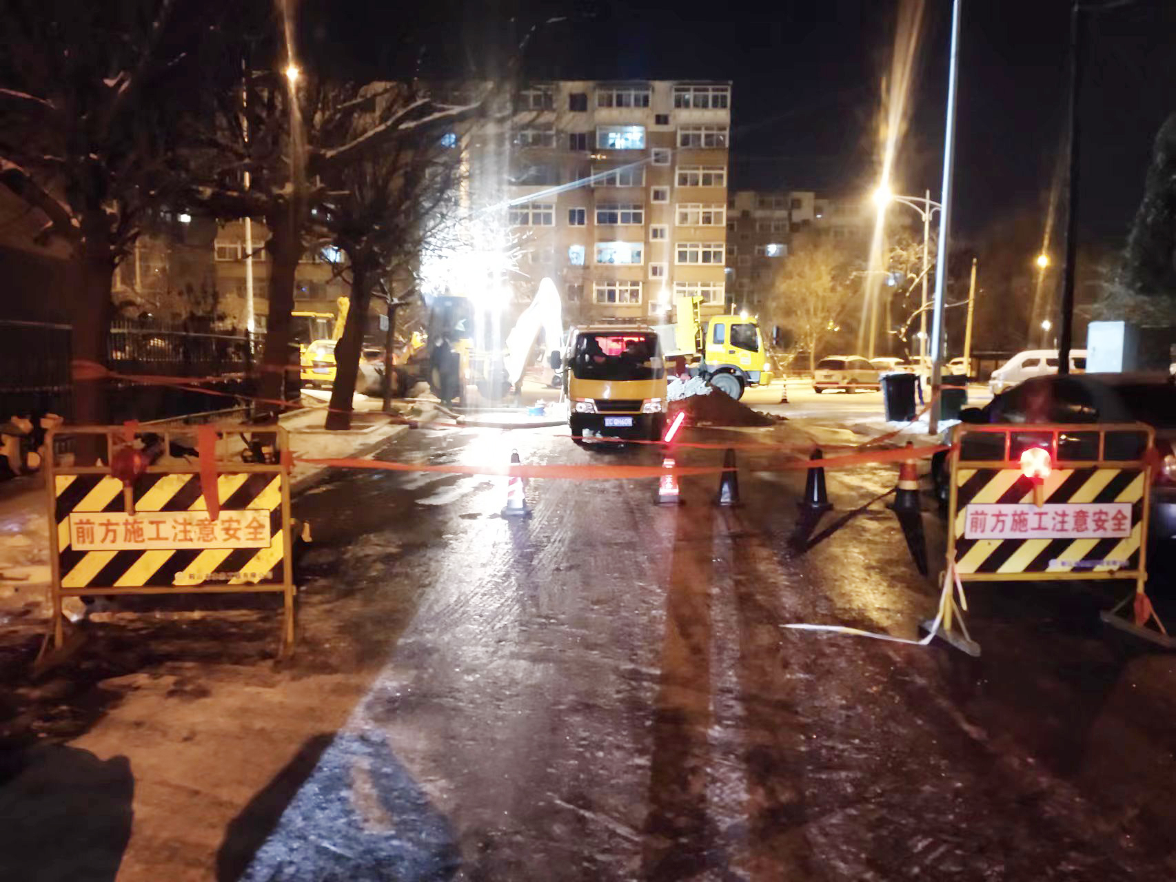 城市供水事關(guān)千家萬(wàn)戶(hù),是與人民群眾生產(chǎn)生活息息相關(guān)的重大民生工作,更是經(jīng)濟社會(huì )發(fā)展最重要的基礎性保障。入冬以來(lái),水務(wù)集團全面加強冬季供水服務(wù)工作,不斷加大供水管網(wǎng)巡檢力度,全力保證供水管網(wǎng)運行安全。11月27日15時(shí),水務(wù)集團通過(guò)管網(wǎng)監控系統發(fā)現深溝寺七區可能存在漏水,并立即派遣相關(guān)人員到地區排查和探漏定位。于當日17時(shí),確定武邑街與宋家街路口處的DN300管線(xiàn)漏水量較大,此處停水維修將涉及用戶(hù)約5075戶(hù)。集團生產(chǎn)技術(shù)部接到報修后,第一時(shí)間向主管領(lǐng)導匯報現場(chǎng)情況和停水方案,并得到領(lǐng)導指示:要求搶修人員要進(jìn)一步提高政治站位,供水晚高峰過(guò)后進(jìn)行連夜搶修,確保28日供水早高峰前完成搶修任務(wù)。