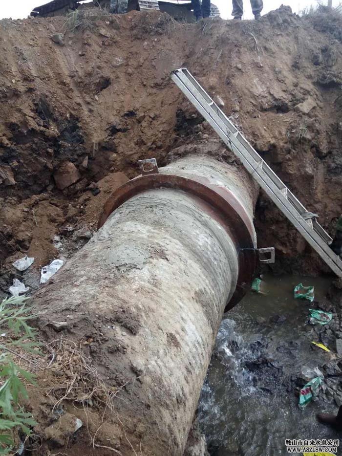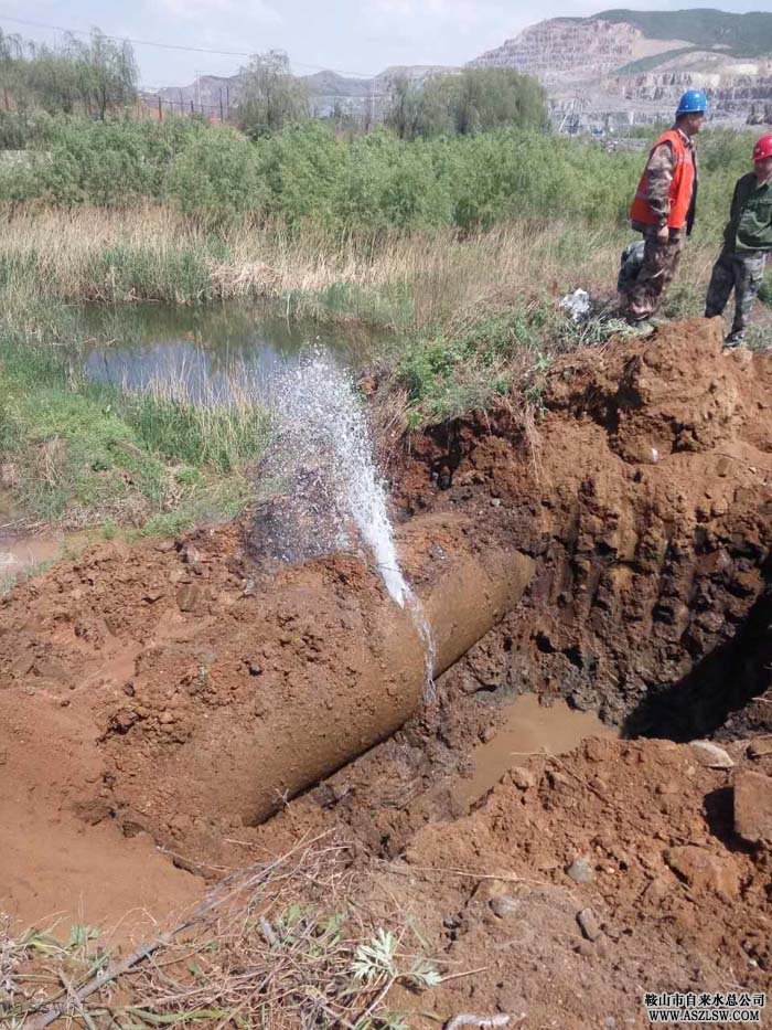 由于管線(xiàn)漏水位置處在45度傾斜的土坡上,且附近有一塊巨大的石頭阻礙,造成現場(chǎng)挖掘和管線(xiàn)清理工作非常困難。但是搶修隊職工迎難而上,采取安全防范措施,小心謹慎,最終將漏水管線(xiàn)安全挖出。漏水處為水泥管口漏,根據搶修方案,采用熟鐵管件包覆漏水處的方法,搶修隊員立即進(jìn)入修漏戰斗中。烈日下,他們頂著(zhù)不斷噴涌而出的漏水,在濕滑的淤泥中與時(shí)間賽跑,以熟練的技能,安裝管線(xiàn),進(jìn)行焊接、打口。經(jīng)過(guò)大家一天的奮戰,漏水終于堵住,保障了供水管線(xiàn)安全運行。