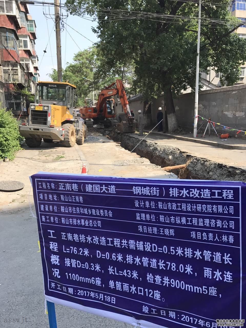 隨著(zhù)鞍山市創(chuàng )建全國文明城市工作的開(kāi)展,受有關(guān)部門(mén)委托,水務(wù)集團排水事業(yè)總公司工程開(kāi)發(fā)公司承建正南巷(建國大道—鋼城街)排水改造工程。該工程于5月18日開(kāi)工,預計6月18日結束,工期32天。