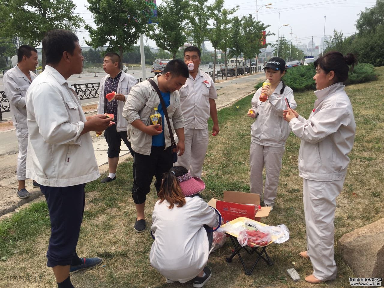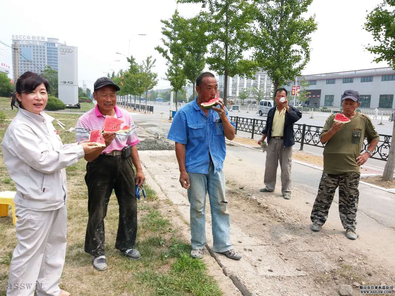6月30上午水務(wù)集團排水事業(yè)總公司同輝工程部黨支部組織安全生產(chǎn)領(lǐng)導小組成員,來(lái)到位于勝利北路邊溝維修工程施工現場(chǎng),對奮戰在高溫作業(yè)一線(xiàn)的施工人員進(jìn)行慰問(wèn)。為一線(xiàn)職工和民工送去冰鎮礦泉水、西瓜、西紅柿、飲料等防暑降溫飲品,為他們送去一份關(guān)懷、一份清涼,讓一線(xiàn)職工神清氣爽地投入到工作中,保質(zhì)保量的完成施工任務(wù)。
