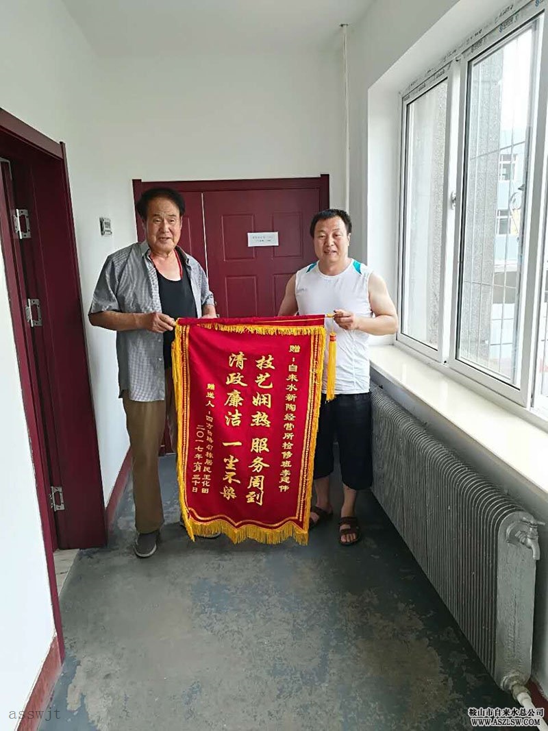 原來(lái),老人家住四方臺路47棟,此樓是自有產(chǎn)權,不歸自來(lái)水維修。平日里,老人兒女不在身邊,老兩口沒(méi)人照顧。多年來(lái),老人家里每次發(fā)生漏水,李建敏都會(huì )上門(mén)義務(wù)為老兩口維修水管,只要老人一個(gè)電話(huà),李建敏就算加班加點(diǎn)都趕來(lái)維修,有時(shí)還幫助老人干一些體力活。老人曾多次想表達謝意,但李建敏每次都推辭。老人說(shuō):“現在的社會(huì ),這樣的年輕人太少了,想到馬上要到七一了,老人特意送來(lái)這面錦旗以表感激之情,他為我們的黨能有這樣的好黨員感到驕傲,也感謝自來(lái)水公司培養了這樣優(yōu)秀的職工”。