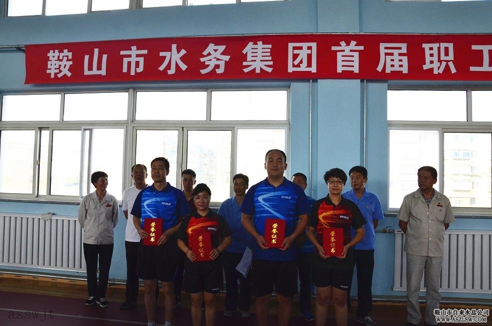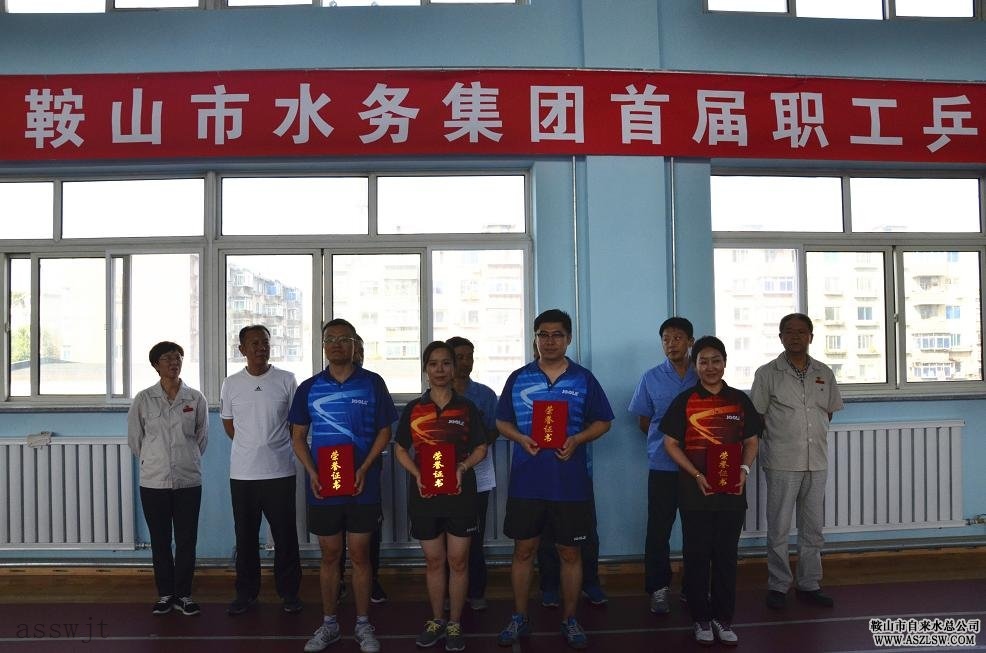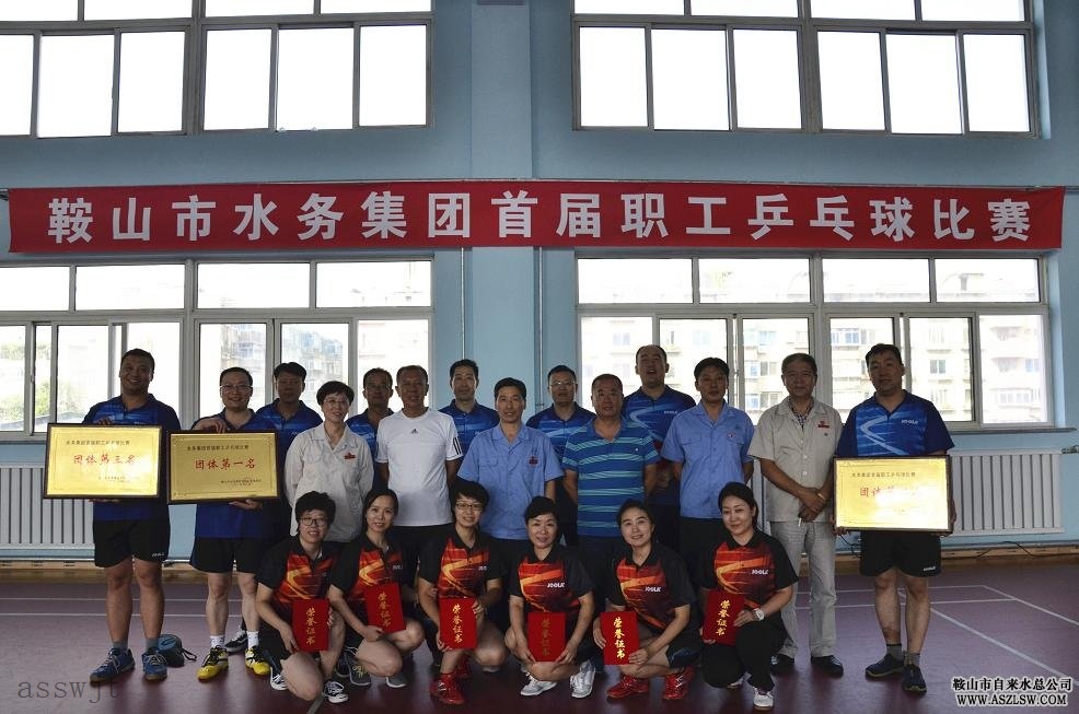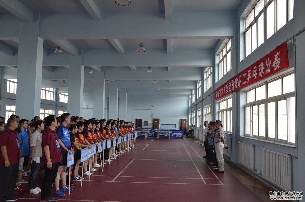 為落實(shí)全民健身要求,進(jìn)一步推動(dòng)集團體育文化建設,8月30日至31日,水務(wù)集團首屆職工乒乓球比賽在鞍鋼廣達體育中心乒乓球館隆重舉行。比賽得到了各級領(lǐng)導的高度重視,市國資委黨建工作處處長(cháng)李忠、水務(wù)集團籌備組成員張文平、于慧才、林殿威、趙普、朱曉明、趙曉銘親臨比賽現場(chǎng),參加開(kāi)、閉幕式并觀(guān)看了比賽。