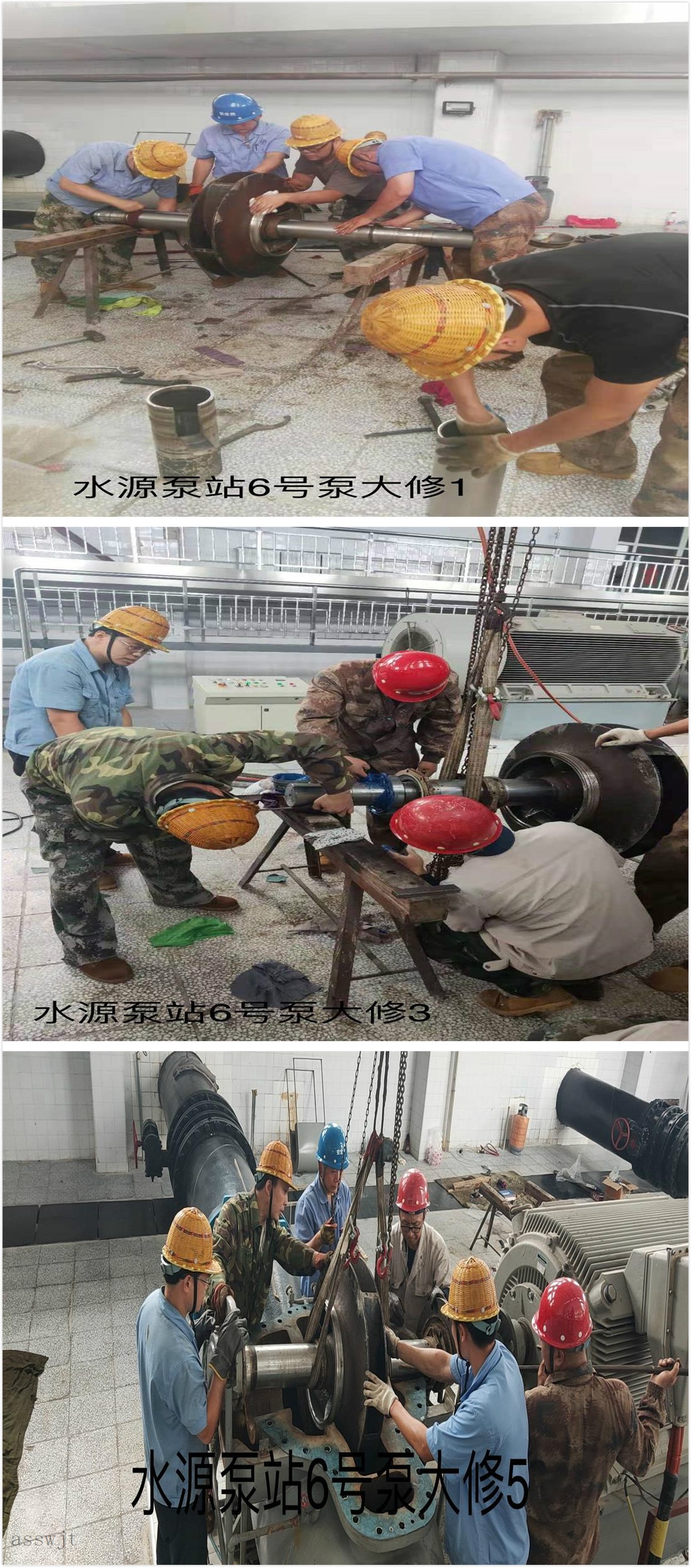 9月12日下午,供水公司機修廠(chǎng)接到水源泵站6號泵故障維修報告。水源泵站6號臥泵軸內側聲音異常,經(jīng)初步分析推斷是軸承損壞導致,需要對臥泵進(jìn)行開(kāi)蓋檢修排除故障。第二天恰逢中秋供水高峰,供水公司機修廠(chǎng)接到報修后,立即組織維修人員,制定好搶修方案,做好搶修前的準備工作。