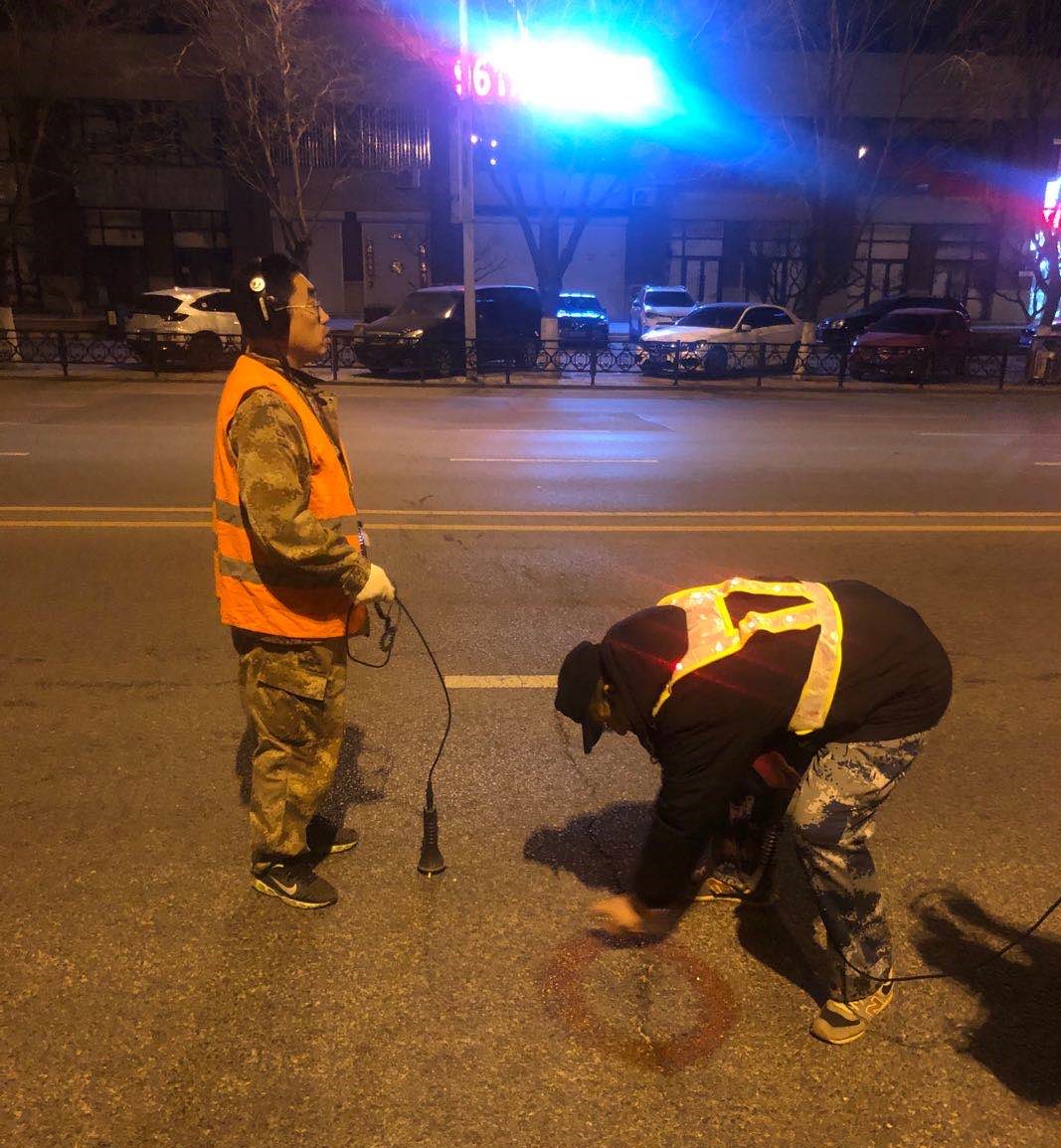 他常常在后半夜出現在鞍山的大街小巷。頭帶耳機,脖掛聽(tīng)漏儀,手持聽(tīng)漏棒,一步一停追隨這座城市供水管網(wǎng)的脈搏,感覺(jué)著(zhù)地下管網(wǎng)的“一舉一動(dòng)”,及時(shí)發(fā)現其中的潛在隱患。