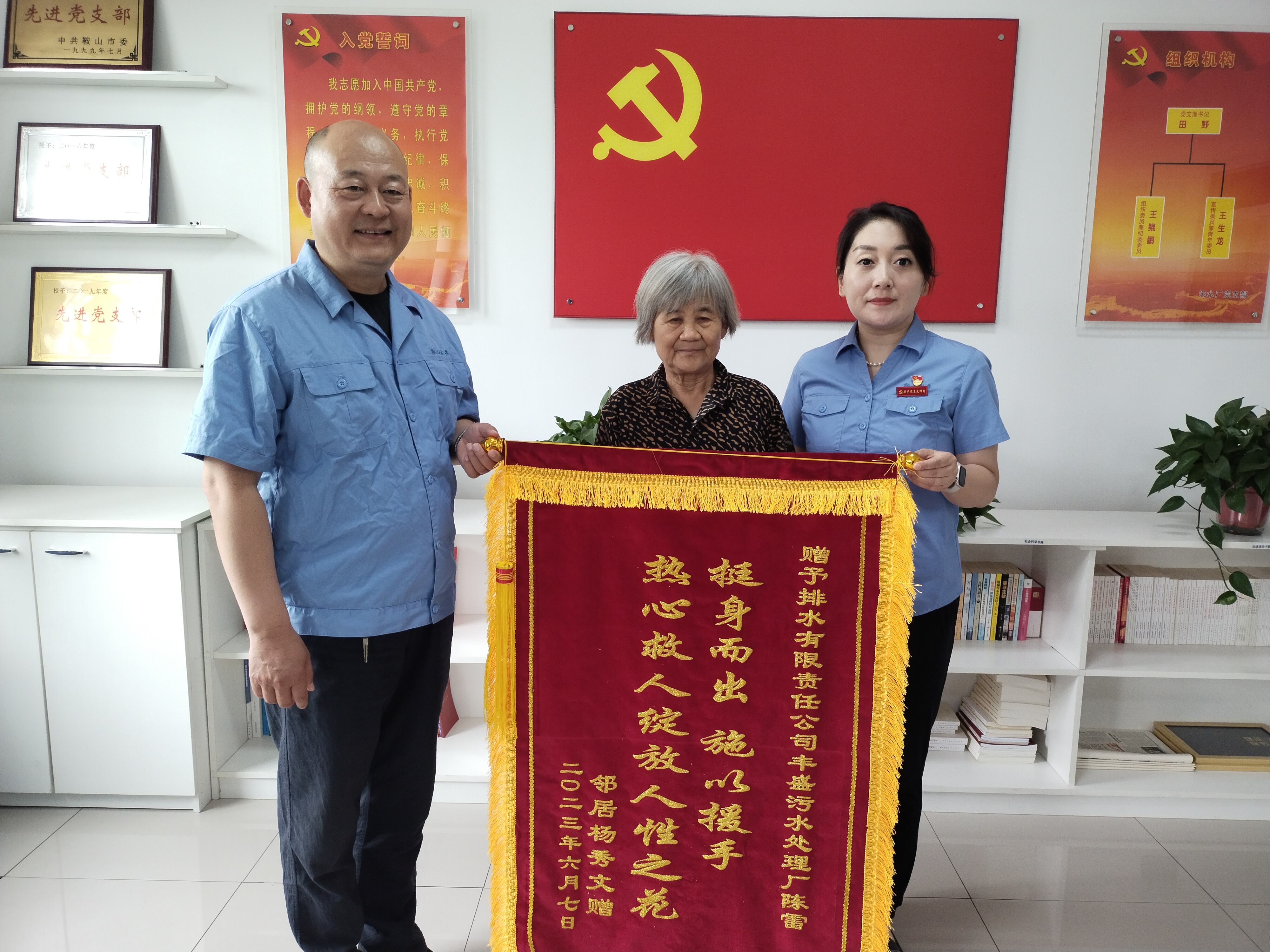 近日,千山區舊堡村的楊秀文老人來(lái)到水務(wù)集團排水有限責任公司豐盛污水處理廠(chǎng)贈送了一面題為“挺身而出施以援手 熱心救人綻放人性之花”的錦旗,對污水廠(chǎng)職工陳雷奮不顧身,救火救人的英勇行為表示感謝。