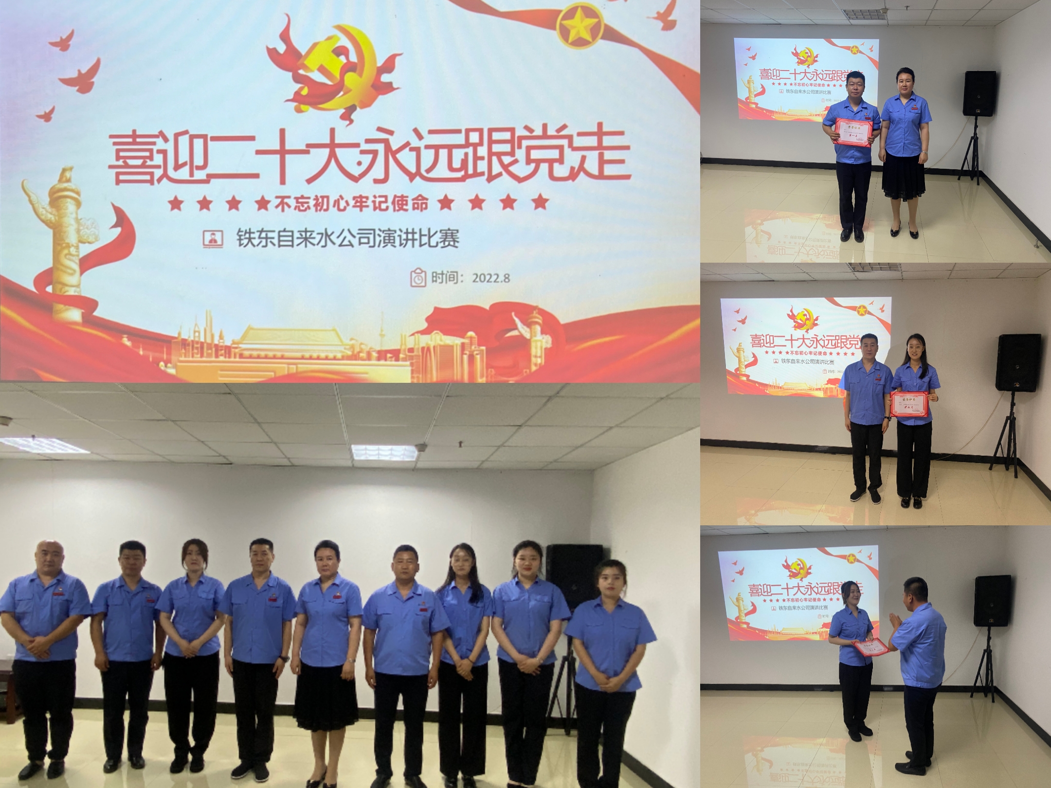 為深入學(xué)習貫徹習近平新時(shí)代中國特色社會(huì )主義思想,為黨的二十大召開(kāi)營(yíng)造喜慶熱烈的企業(yè)氛圍,8月3日上午,水務(wù)集團鐵東自來(lái)水公司黨總支舉辦“喜迎二十大 永遠跟黨走”演講比賽。