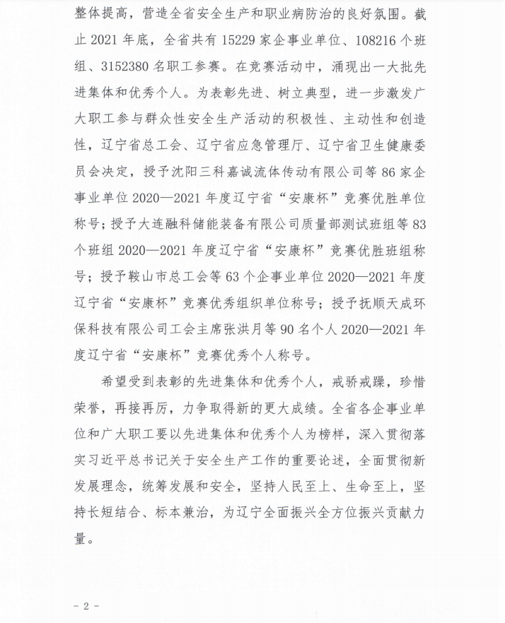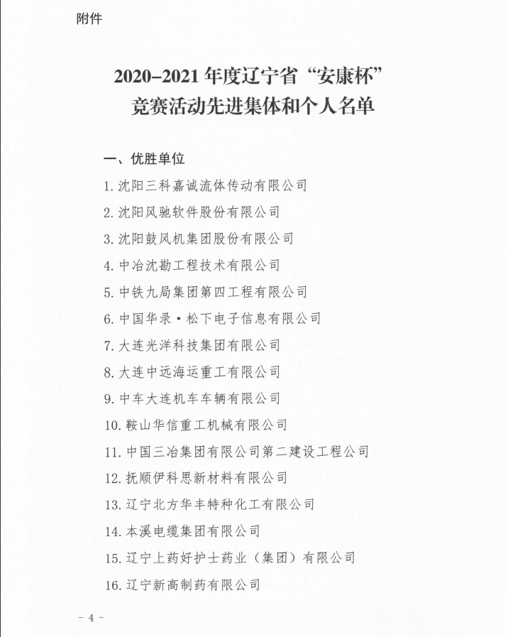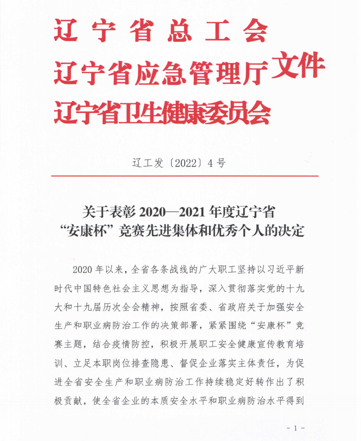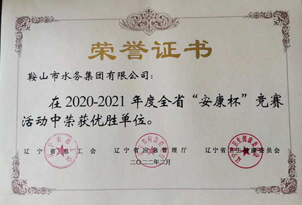 水務(wù)集團榮獲2020-2021年度遼寧省“安康杯”競賽優(yōu)勝單位