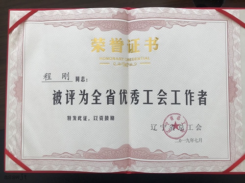 程剛同志被評為“全省優(yōu)秀工會(huì )工作者”