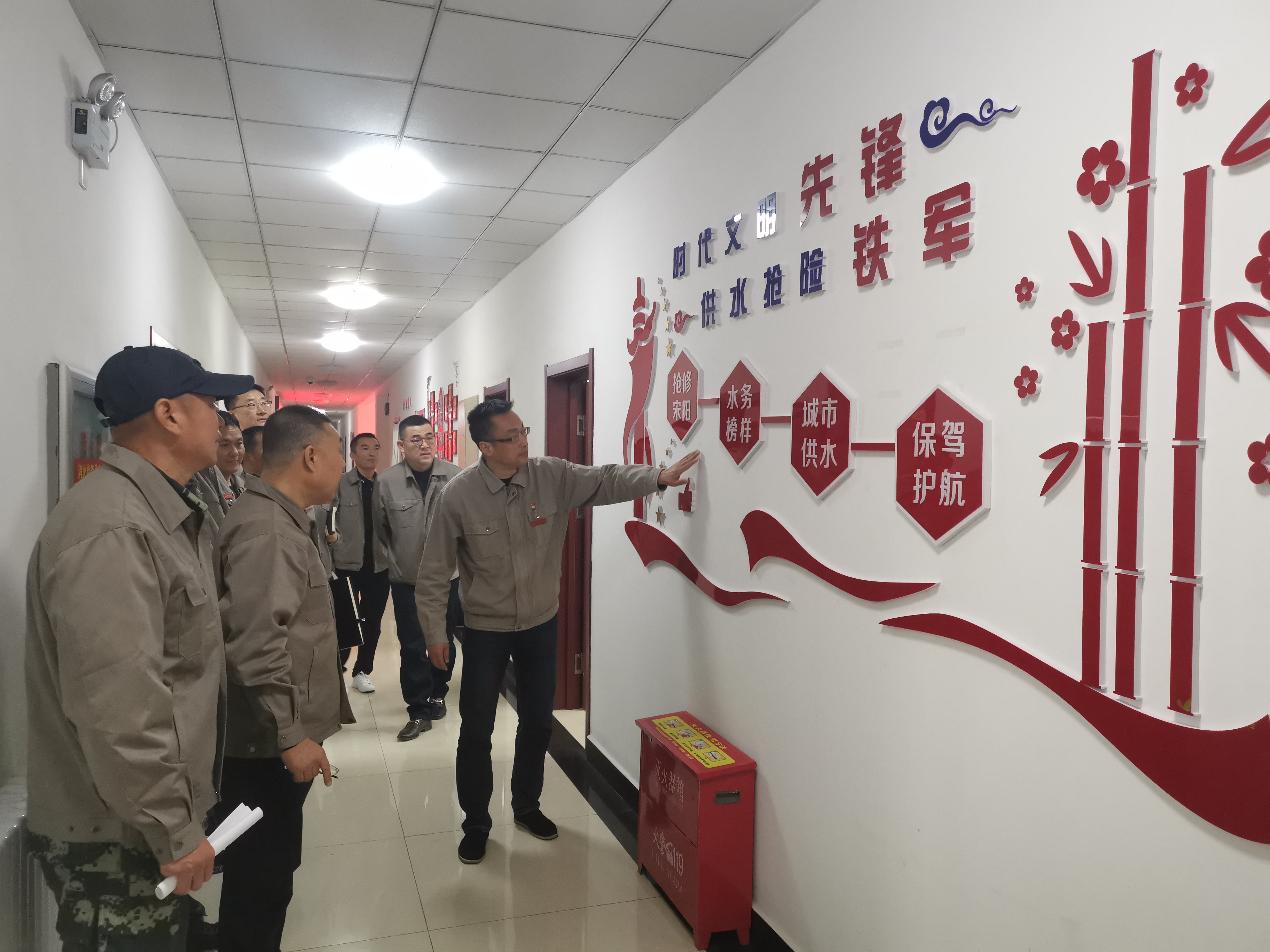 宋陽(yáng),水務(wù)工程公司搶修隊隊長(cháng)。在工作中,他三十年如一日,干著(zhù)供水行業(yè)里最臟最累的“苦大力”工作。有時(shí),面對困難和挑戰,他秉承信念迎難而上,在重大搶修任務(wù)中身先士卒。宋陽(yáng)多次放棄療養、旅游等勞模福利,只因他一刻也舍不得離開(kāi)他熱愛(ài)的管道搶修工作。宋陽(yáng)不單是一位好職工,更是一位好師傅、好大哥。在生活中,他對并肩作戰的兄弟關(guān)愛(ài)有加,經(jīng)常利用業(yè)余時(shí)間手把手傳授自己工作中積累的寶貴工作經(jīng)驗,經(jīng)他帶出來(lái)的年輕工人技師每個(gè)人都可以在各自的工作崗位上獨當一面。講述結束后,陳哲書(shū)記還帶領(lǐng)大家參觀(guān)了宋陽(yáng)勞模創(chuàng )新工作室和搶修隊事跡展板。