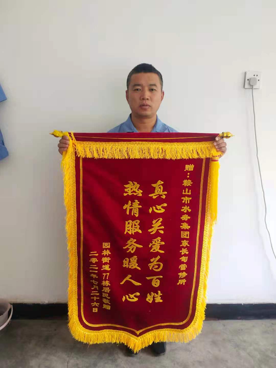 自黨史學(xué)習教育開(kāi)展以來(lái),水務(wù)集團將“我為群眾辦實(shí)事”實(shí)踐活動(dòng)作為檢驗黨史學(xué)習教育成果的有力抓手,努力為群眾做好事、辦實(shí)事、解難事。近日,園林大道77棟11號用戶(hù)將一面繡有“真心關(guān)愛(ài)為百姓 熱情服務(wù)暖人心”的錦旗送到水務(wù)集團鐵東自來(lái)水公司東長(cháng)甸管修所,對東長(cháng)甸管修所高效處理用戶(hù)訴求和真誠貼心的義務(wù)幫助表示衷心感謝。