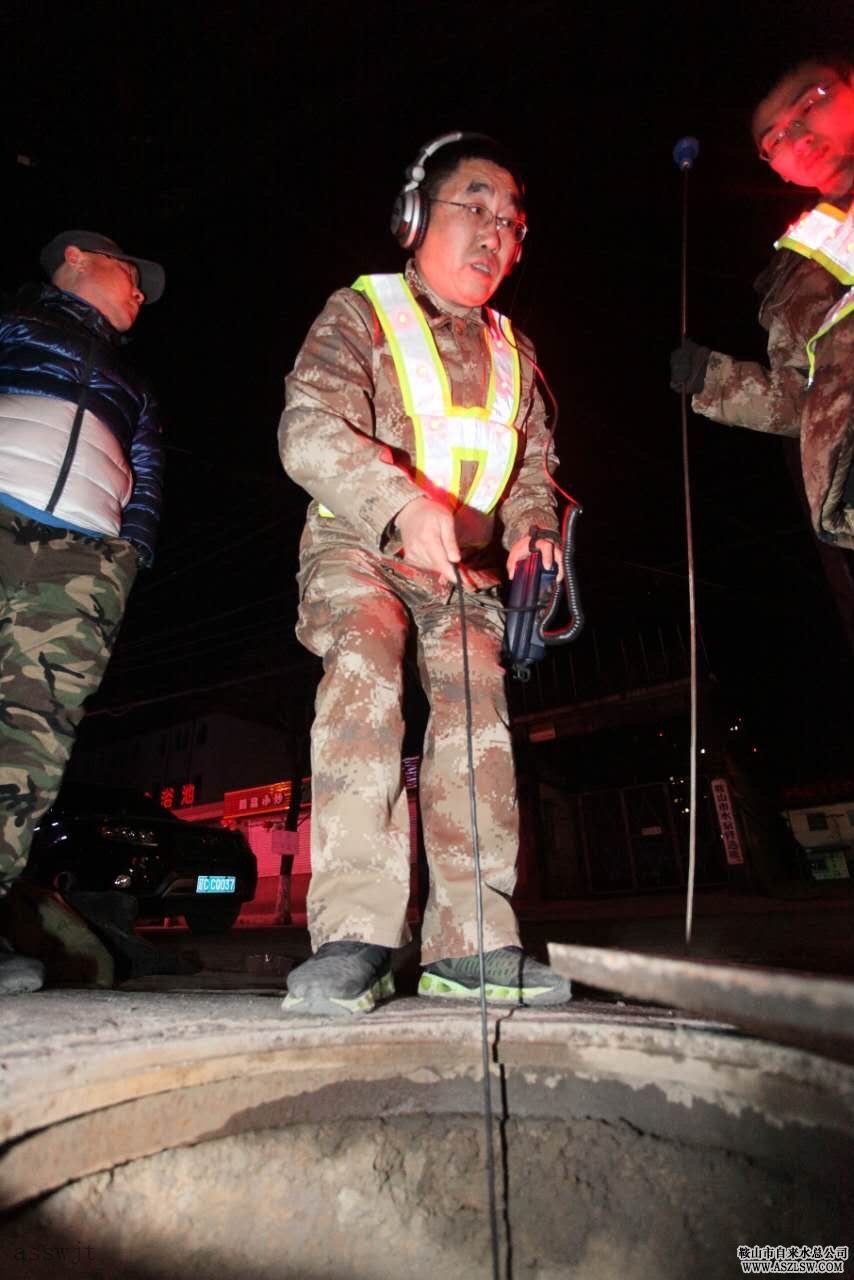 午夜時(shí)分,馬路上十分清冷,三位身穿發(fā)光馬甲的自來(lái)水查漏隊員手拿“聽(tīng)診器”認真傾聽(tīng)來(lái)自地下水管的聲音。他們就是來(lái)自鞍山市水務(wù)集團查漏隊的隊員。每當夜深人靜時(shí),他們就會(huì )帶上那價(jià)值百萬(wàn)的設備尋找地下自來(lái)水管上的漏點(diǎn)。