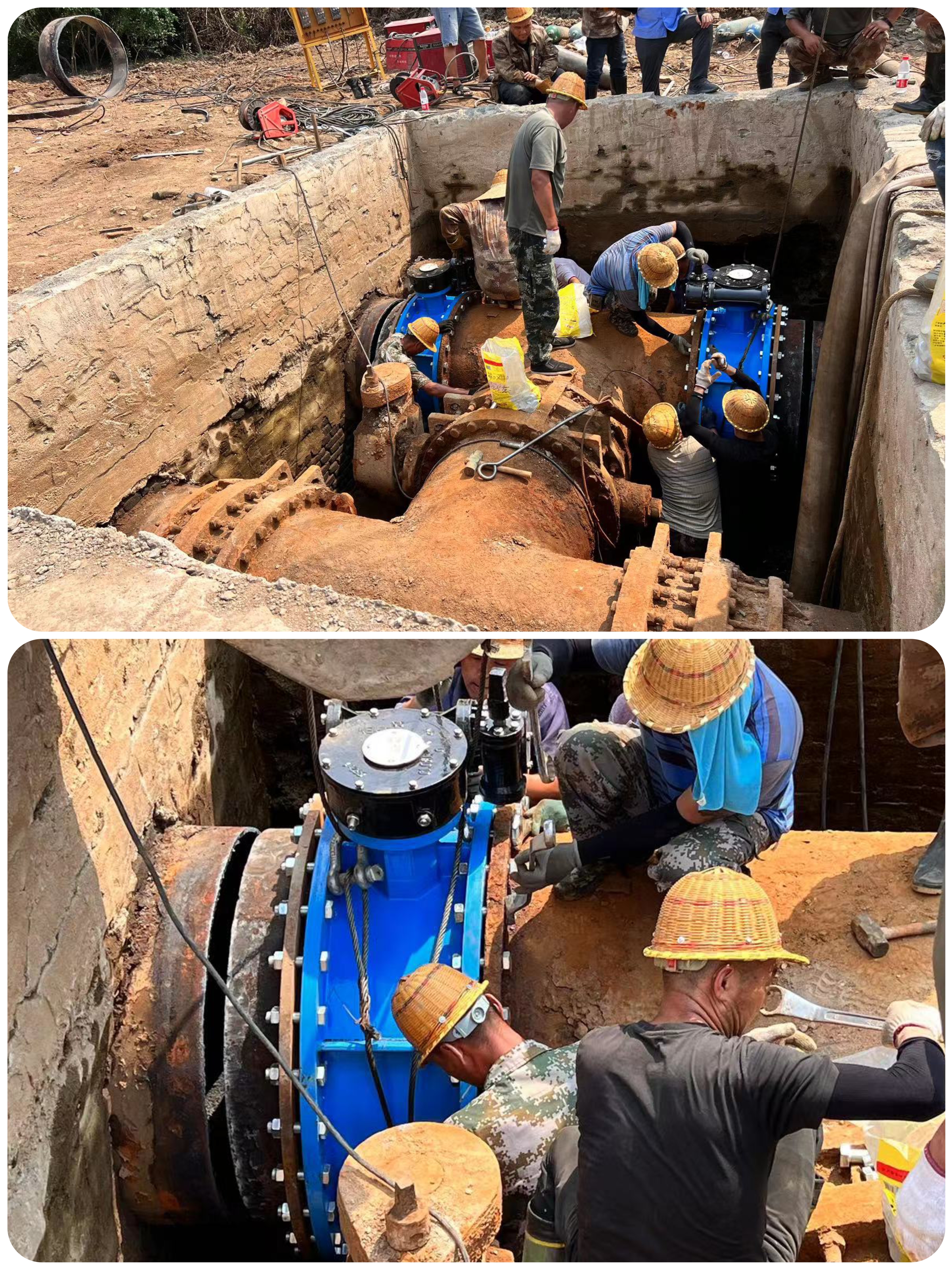 為確保施工順利進(jìn)行,工程施工前,工程公司科學(xué)謀劃,統籌安排,充分做好詳細勘察現場(chǎng)確定施工范圍、根據進(jìn)出路線(xiàn)修筑便道、清掏施工閥門(mén)井室等準備工作。施工現場(chǎng)共組織20余名工作人員,1輛挖機、1輛吊車(chē)和4輛貨車(chē)進(jìn)行施工作業(yè)。施工中,搶修隊隊長(cháng)宋陽(yáng)充分發(fā)揮黨員先鋒模范作用,處處為先,帶領(lǐng)大家克服高溫天氣、工作量大、坑深泥滑等困難,認真完成每一道拆卸和安裝工序。當晚7時(shí),全部施工任務(wù)順利完成。