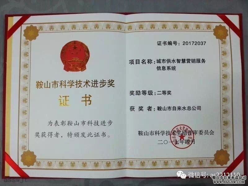 該系統的研制與運行,受到了市政府、同行業(yè),以及廣大用戶(hù)的高度關(guān)注和贊揚,真真正正給用戶(hù)帶來(lái)了便利,榮獲2016年度鞍山市科學(xué)技術(shù)進(jìn)步二等獎。