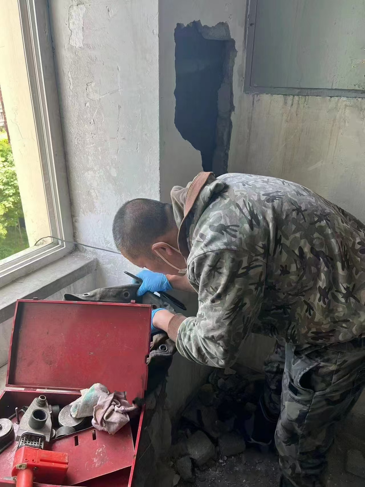 維修人員到達現場(chǎng)對一樓地躺管進(jìn)戶(hù)管線(xiàn)進(jìn)行全面檢查,經(jīng)過(guò)仔細排查與分析,初步鎖定一樓左墻面內立杠堵塞,因主立杠管線(xiàn)敷設在水泥墻面內,給此次搶修工作造成了極大的困難。水務(wù)集團迅速制定搶修方案,維修人員輪流將墻面處理層一點(diǎn)點(diǎn)的砸開(kāi),清理完面積,對立杠變徑處進(jìn)行切割,取出管內堵塞雜質(zhì),放水清理,重新采用相同材質(zhì)的PPR管件及變徑進(jìn)行熱熔焊接,熔接完成后對主立杠管線(xiàn)進(jìn)行了打壓測試。經(jīng)過(guò)3個(gè)多小時(shí)奮力搶修,堵塞管線(xiàn)得到了有效解決,頂層住戶(hù)水壓正常,及時(shí)恢復該單元居民生活用水。隨后維修人員對樓道地面及墻面進(jìn)行了修復,居民百姓對水務(wù)集團高效的工作作風(fēng)和優(yōu)質(zhì)的服務(wù)態(tài)度表示一致認可。