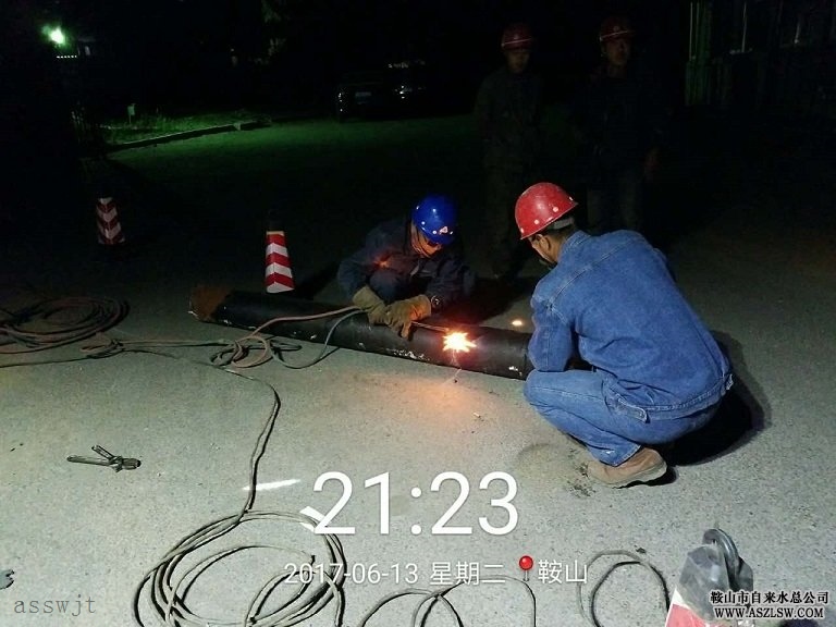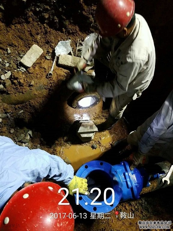 由于該路段道路狹窄,公交車(chē)流量大,工程開(kāi)工以來(lái),只能夜間9:30以后等最后一班公交車(chē)回庫后才能挖掘溝槽施工,給施工帶來(lái)一定困難,減慢了施工進(jìn)度。6月13日夜間22點(diǎn),工程進(jìn)入接點(diǎn)作業(yè)階段。施工現場(chǎng)為三個(gè)工作坑:DN300×300兩個(gè)、DN300×200一個(gè),需要新安裝一組DN200閥門(mén)。凌晨3點(diǎn)45分左右,現場(chǎng)接點(diǎn)完成后,進(jìn)行管道沖洗,沖洗合格后對現場(chǎng)進(jìn)行清掃。