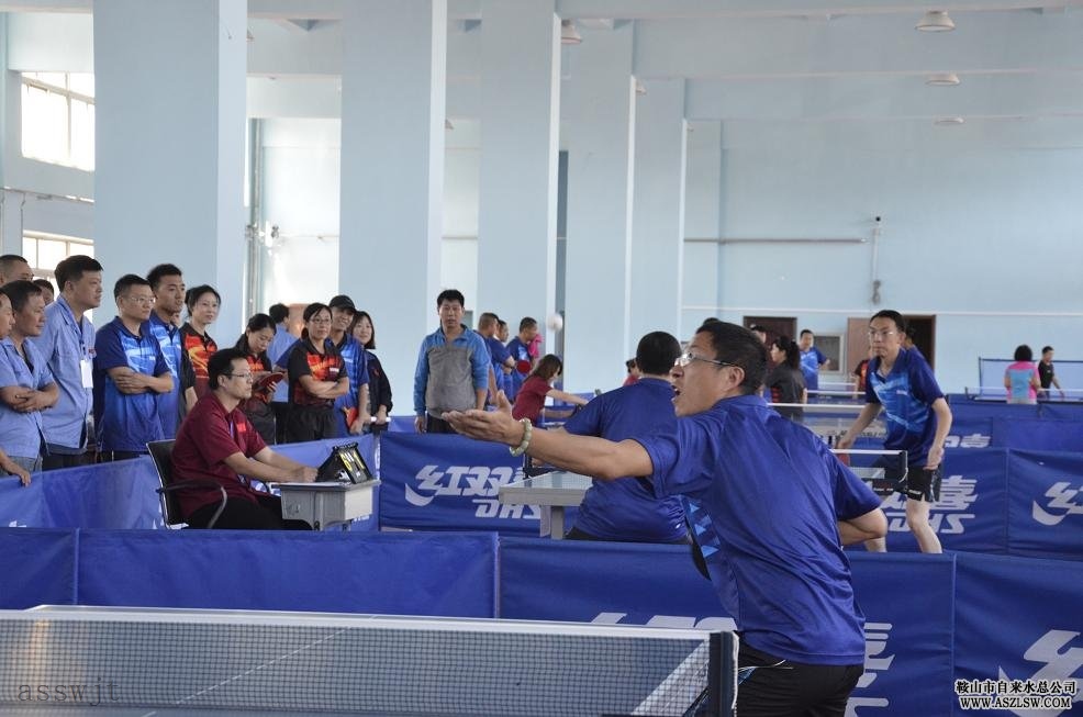 為落實(shí)全民健身要求,進(jìn)一步推動(dòng)集團體育文化建設,8月30日至31日,水務(wù)集團首屆職工乒乓球比賽在鞍鋼廣達體育中心乒乓球館隆重舉行。比賽得到了各級領(lǐng)導的高度重視,市國資委黨建工作處處長(cháng)李忠、水務(wù)集團籌備組成員張文平、于慧才、林殿威、趙普、朱曉明、趙曉銘親臨比賽現場(chǎng),參加開(kāi)、閉幕式并觀(guān)看了比賽。