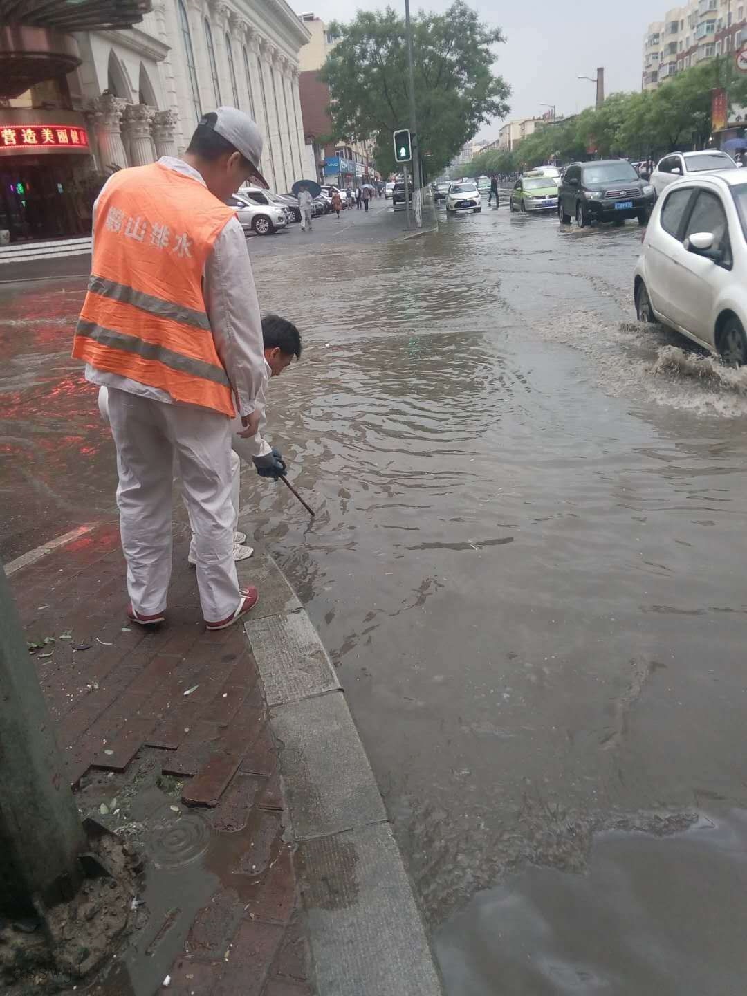 中午11時(shí),城區局部地區遭受大雨來(lái)襲,排水公司全體防汛人員以雨為令,迅速行動(dòng)。鐵東、鐵西、立山三家管修分公司、工程第一、第二、第三分公司防汛巡視人員迅速趕到轄區內地勢低洼易積水地段,及時(shí)掀開(kāi)井蓋全力泄洪,隨時(shí)清理漂至井篦的垃圾雜物,派專(zhuān)人在井周值守。污水廠(chǎng)防汛監控系統密切監測各大橋涵、道路水情,18個(gè)泵站根據水量情況及時(shí)增加運行水泵數量,確保道路橋涵不出現大面積積水,保證人車(chē)安全,道路暢通。全體防汛人員頂風(fēng)冒雨,努力奮戰,直到積水退去才撤離現場(chǎng),保障了城市排水安全。
