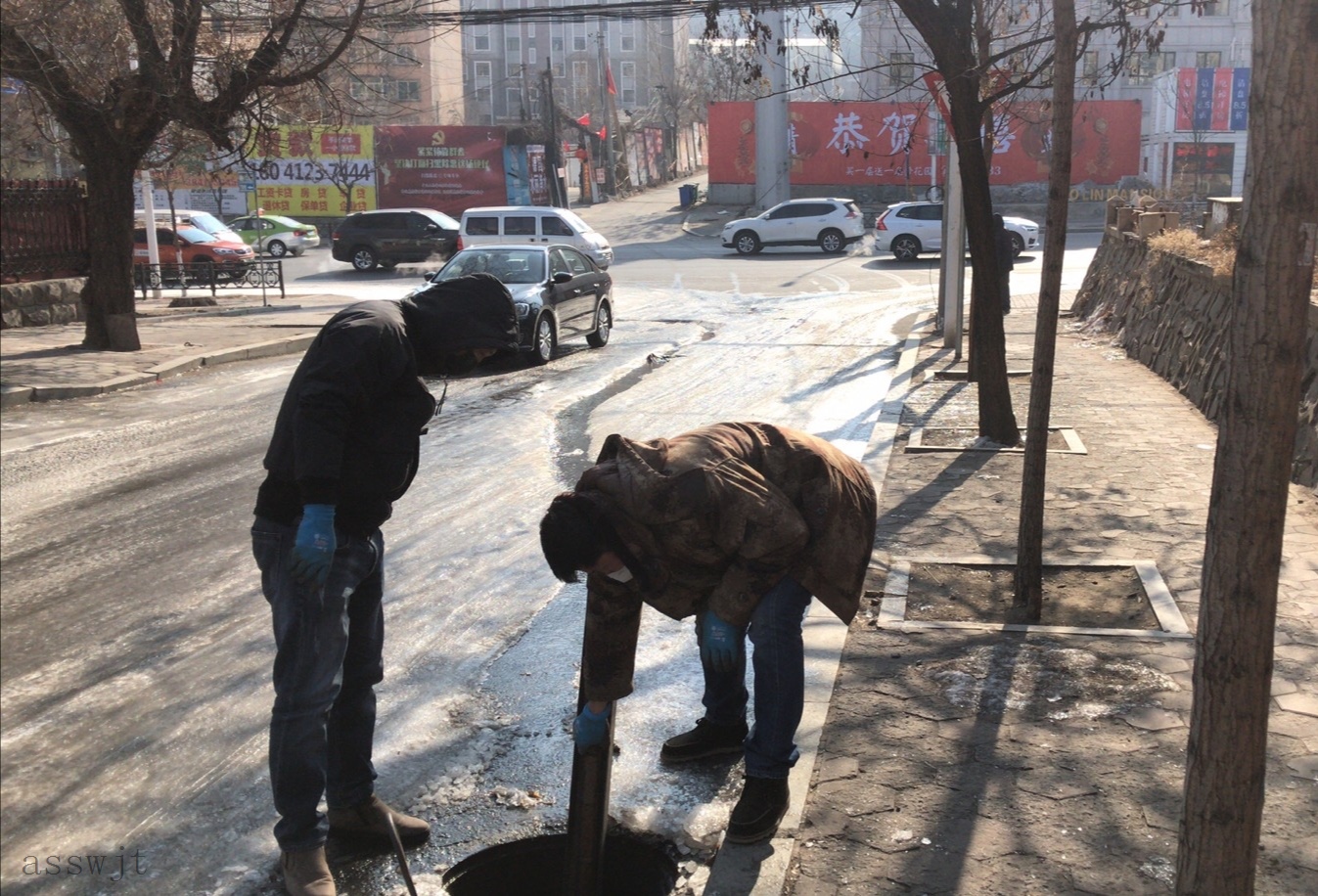 對堵塞下水管線(xiàn)進(jìn)行翻修,全力做好戰“疫”期間冬季服務(wù)。
