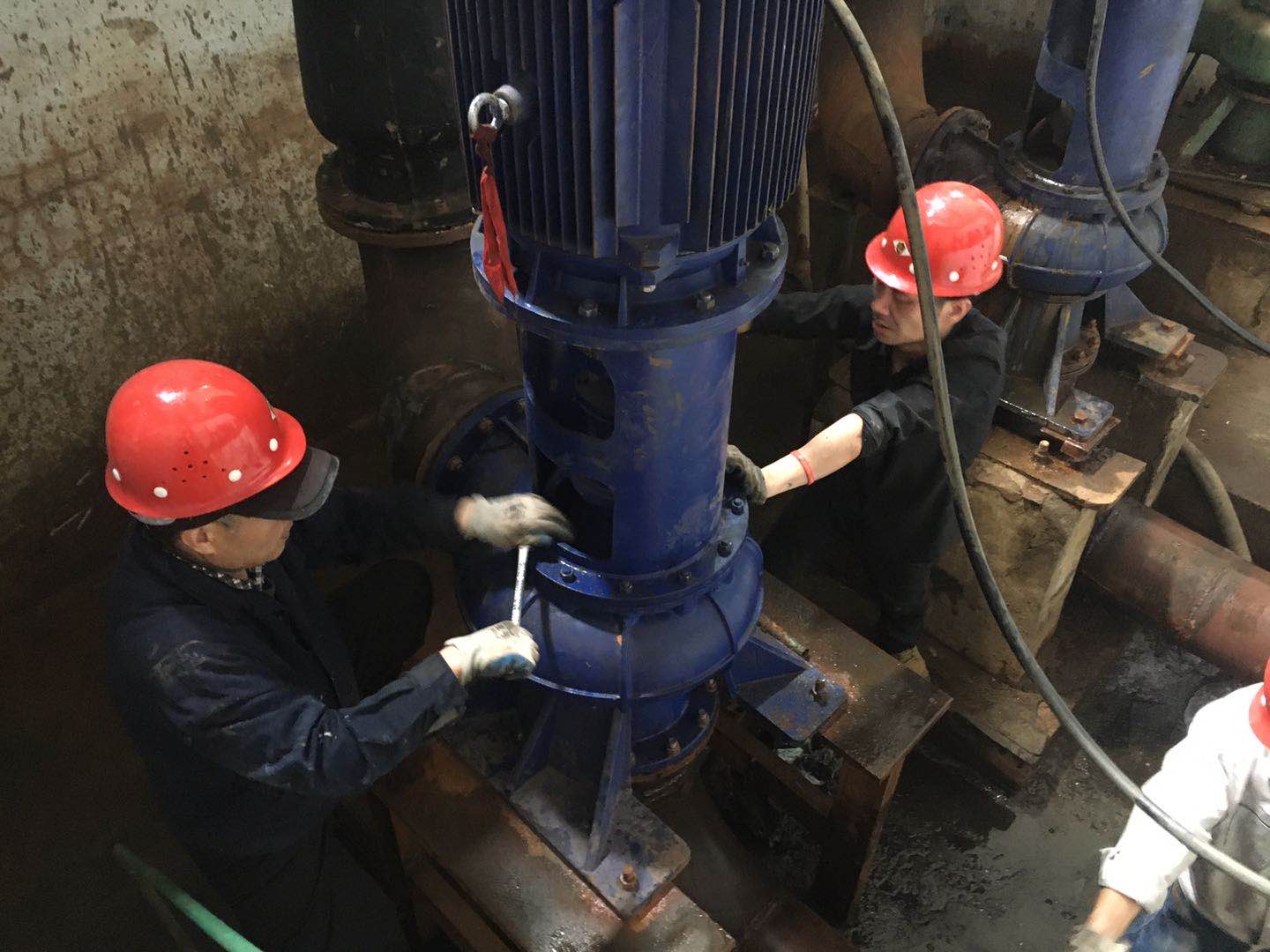 根據泵站出現的緊急情況,制定了搶修方案。在搶修過(guò)程中,發(fā)現由于原進(jìn)水池閥門(mén)無(wú)法關(guān)閉,進(jìn)水池不斷涌入污水,給搶修工作帶來(lái)了很大難度。通過(guò)廠(chǎng)長(cháng)張甲雷和王強等技術(shù)骨干現場(chǎng)研究,決定在污水池內臨時(shí)安裝多臺小型潛水泵,控制進(jìn)水量。