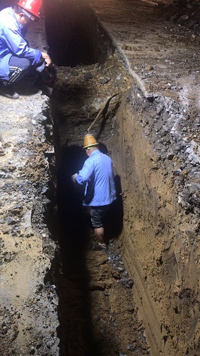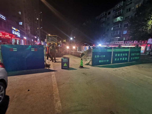 由水務(wù)工程有限公司管網(wǎng)一組承擔施工任務(wù)的山南街配水DN600管線(xiàn)改造工程北起烈士山,南至解放路,全長(cháng)共930米。由于該工程地處山南街車(chē)流量非常大的路段,白天施工影響車(chē)輛通行,從五月進(jìn)場(chǎng)就一直采取夜間施工的模式,每天晚九點(diǎn)開(kāi)始施工,一直持續到凌晨四點(diǎn)。由于地下障礙較多,供暖、燃氣、排水等管線(xiàn)交錯復雜,夜晚施工給工人們帶來(lái)很大困難。為了不影響白天車(chē)輛正常行駛,管網(wǎng)一組每晚施工完都要恢復路面,進(jìn)行除塵和路面沖洗。共動(dòng)用施工人員四十多人,挖掘機3臺,降塵、沖洗等設備十余臺。截止到發(fā)稿還有100米頂管部分等待施工,預計七月上旬完成全部施工任務(wù)。