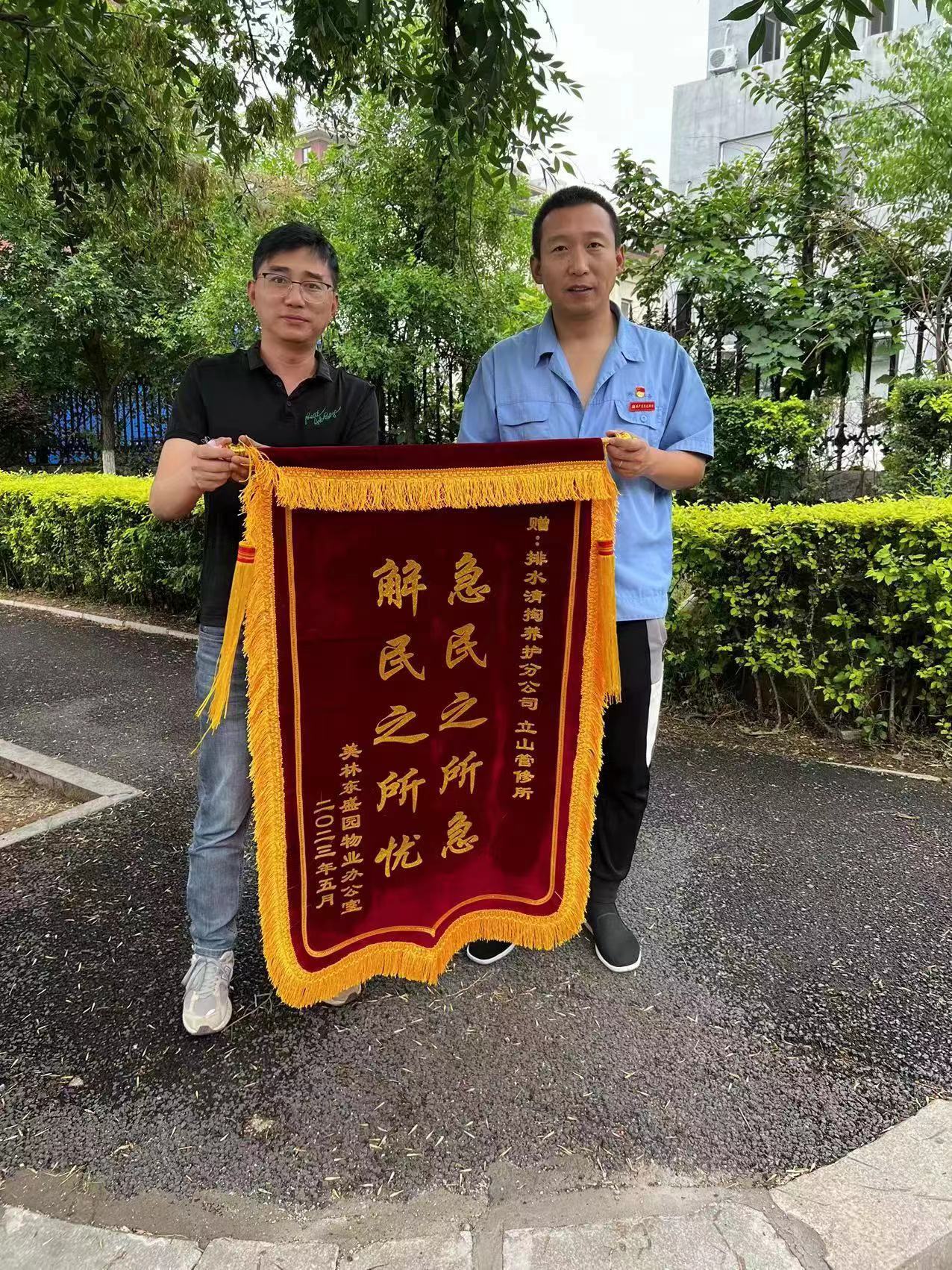 近日,美林東盛園物業(yè)工作人員將印有“急民之所急 解民之所憂(yōu)”的錦旗送至水務(wù)集團排水公司清掏養護維修分公司立山管修所,衷心表達對搶修人員為民服務(wù)的感激之情。 近期,位于高新區美林東盛園小區內下水井堵塞,經(jīng)常造成污水外溢,給小區居民生活帶來(lái)不便。水務(wù)集團排水公司清掏養護維修分公司立山管修所接到求助后,立即安排搶修人員趕赴現場(chǎng)進(jìn)行查看。經(jīng)過(guò)搶修人員反復排查,最終在東慶街排水主管線(xiàn)處發(fā)現堵塞點(diǎn)。確定位置后,搶修人員立即對堵塞排水管線(xiàn)進(jìn)行疏通作業(yè)。經(jīng)過(guò)兩個(gè)小時(shí)的奮戰,成功解決了管線(xiàn)堵塞問(wèn)題。 一面錦旗,一聲道謝,這不僅是一種肯定,更是一種責任。水務(wù)集團排水公司黨員干部職工扛起水務(wù)人的責任擔當,為群眾辦實(shí)事、解難題,用實(shí)際行動(dòng)向“七一”黨的生日獻禮。