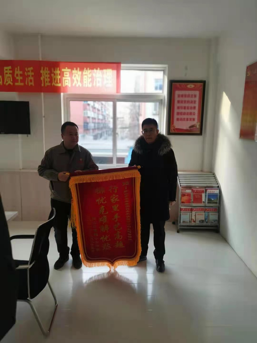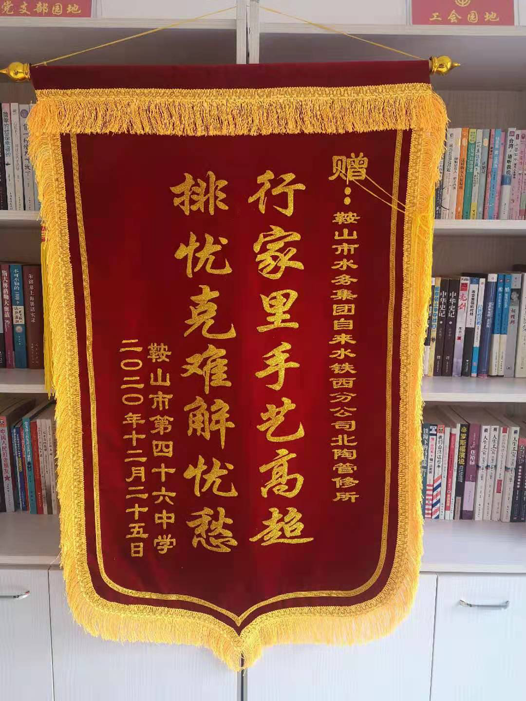 2020年12月26日早晨8點(diǎn),鐵西四十六中學(xué)于海濱校長(cháng)為鐵西公司北陶管修所送來(lái)一面錦旗,對水務(wù)集團能夠迅速反應,第一時(shí)間查找漏水,為保障四十六中學(xué)全體教職員工正常用水表示由衷感謝。