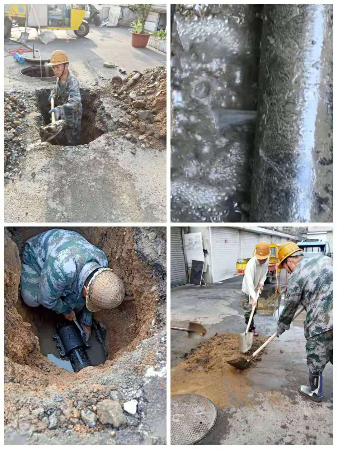 6月11日15:46,騰鰲公司接到用戶(hù)來(lái)電反應謙益堂東側路面有大量清水涌出,得知情況后,騰鰲公司立即組織維修人員第一時(shí)間到現場(chǎng)查看情況。通過(guò)聽(tīng)漏儀器聽(tīng)音定位,初步懷疑在水表井外1米左右處有疑似漏水點(diǎn)。為了盡快恢復居民用水,騰鰲公司維修人員全部投入到此次搶修工作中。
