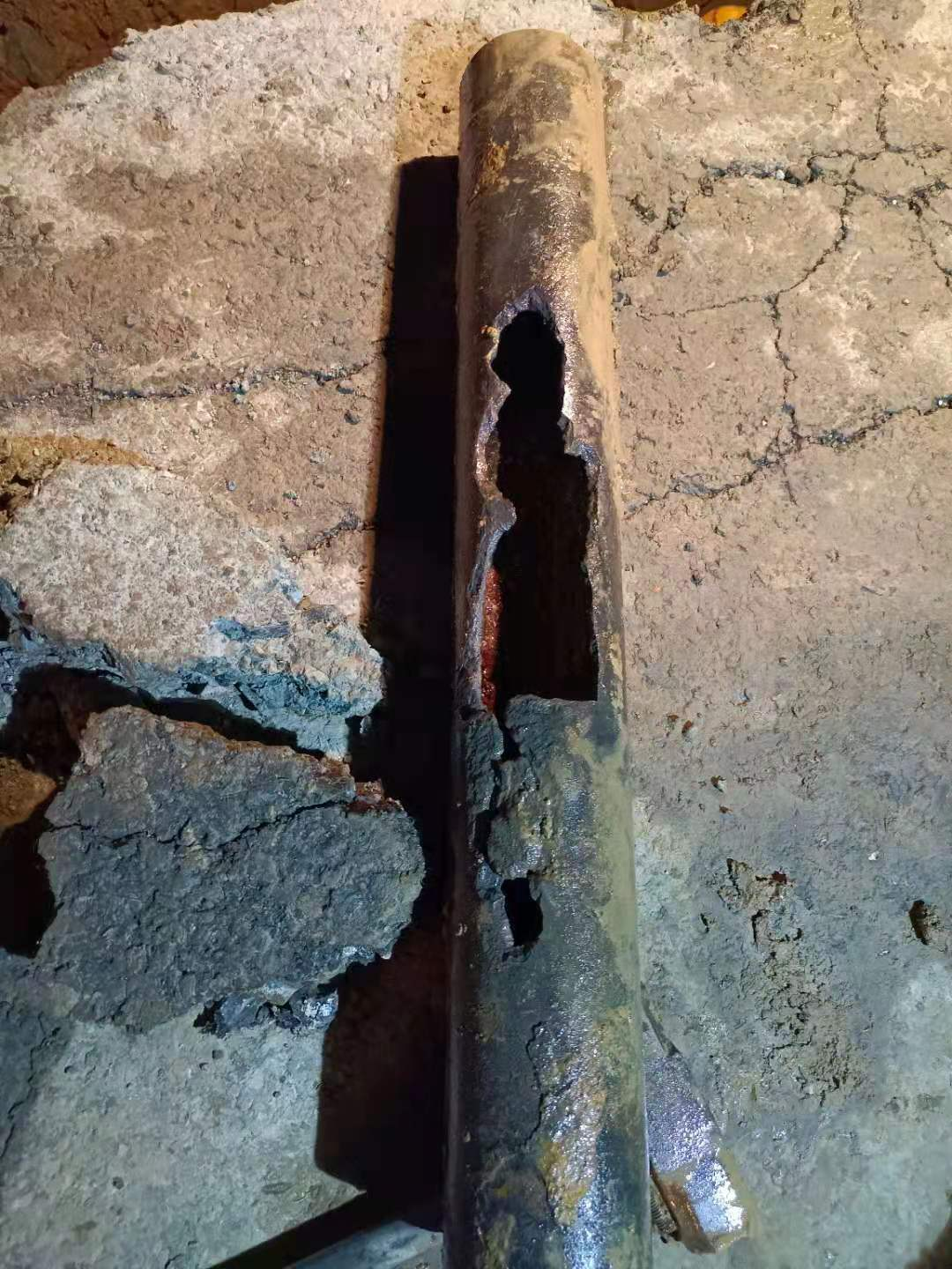 鐵西公司永樂(lè )所嚴格落實(shí)集團第三季度“戰高溫、保民用”工作要求,8月18日中午,管網(wǎng)員攜黨員骨干在對交通路DN500管線(xiàn)沿途巡查途中,發(fā)現原二扎交通崗路東側交通路路面有清水流出。所長(cháng)接到上報后立即帶領(lǐng)維修人員到達現場(chǎng)進(jìn)行勘察,經(jīng)關(guān)閉閥門(mén)方法驗證后,為DN100管線(xiàn)漏水導致。經(jīng)集團查漏隊定點(diǎn)后,鐵西公司維修隊下午1點(diǎn)到達施工現場(chǎng)進(jìn)行挖掘,由于該處管線(xiàn)埋深度達3米左右,經(jīng)過(guò)維修隊近五個(gè)小時(shí)的挖掘,終于在晚18點(diǎn)將漏點(diǎn)找出,漏點(diǎn)為直徑約60毫米左右的漏洞,該管線(xiàn)鋪設材質(zhì)為老鑄鐵管,時(shí)間為30年之久,漏點(diǎn)兩側均有20公分左右裂紋。維修隊決定更換該段漏水管線(xiàn),后用兩個(gè)DN100哈弗節老管新管連接修復漏水,于當21:17修復完成,降低無(wú)效水量約600立/日。