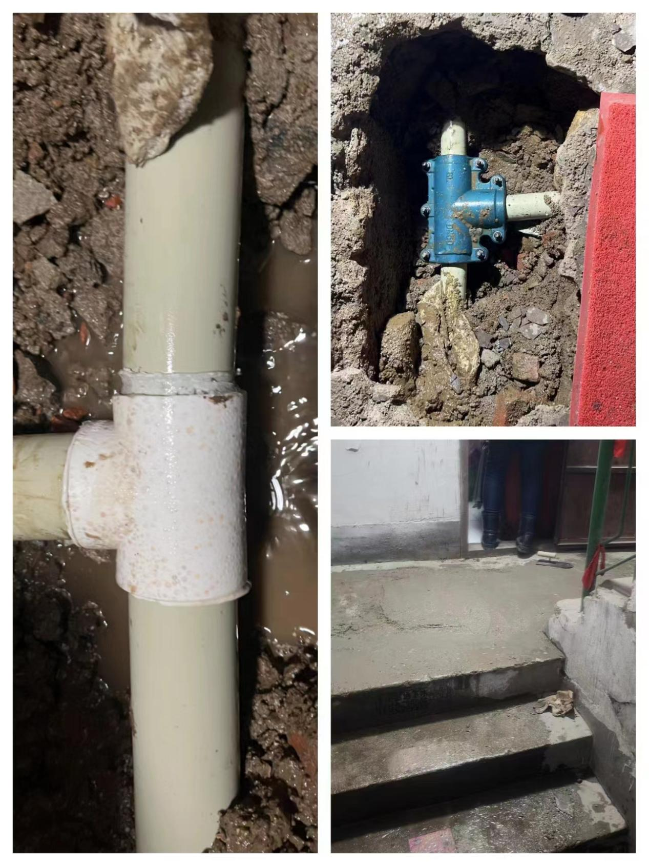 11月12日周日早上,湖南所值班人員通過(guò)水量監控系統發(fā)現安樂(lè )區域夜流量突增,疑似漏水。所里立即與大用戶(hù)進(jìn)行聯(lián)系,同時(shí)維修班趕赴現場(chǎng)排查。經(jīng)溝通,大用戶(hù)沒(méi)有出現漏水情況,也沒(méi)有突發(fā)補水。維修班迅速開(kāi)始區域排查,在排查到安樂(lè )街91棟時(shí),發(fā)現水門(mén)井有疑似漏水聲音,再細致排查,發(fā)現該樓一單元樓道水泥地面潮濕。所里立即聯(lián)系查漏隊進(jìn)行定點(diǎn),經(jīng)查漏隊確認,漏水點(diǎn)為樓道內臺階上。大家放棄休息,立即展開(kāi)挖掘,發(fā)現是PPR63三通開(kāi)裂所致。經(jīng)過(guò)一個(gè)小時(shí)忙碌,終于將漏水修復。