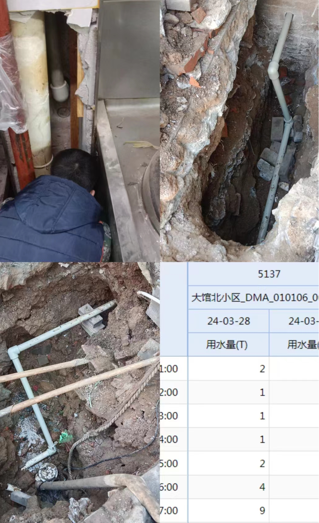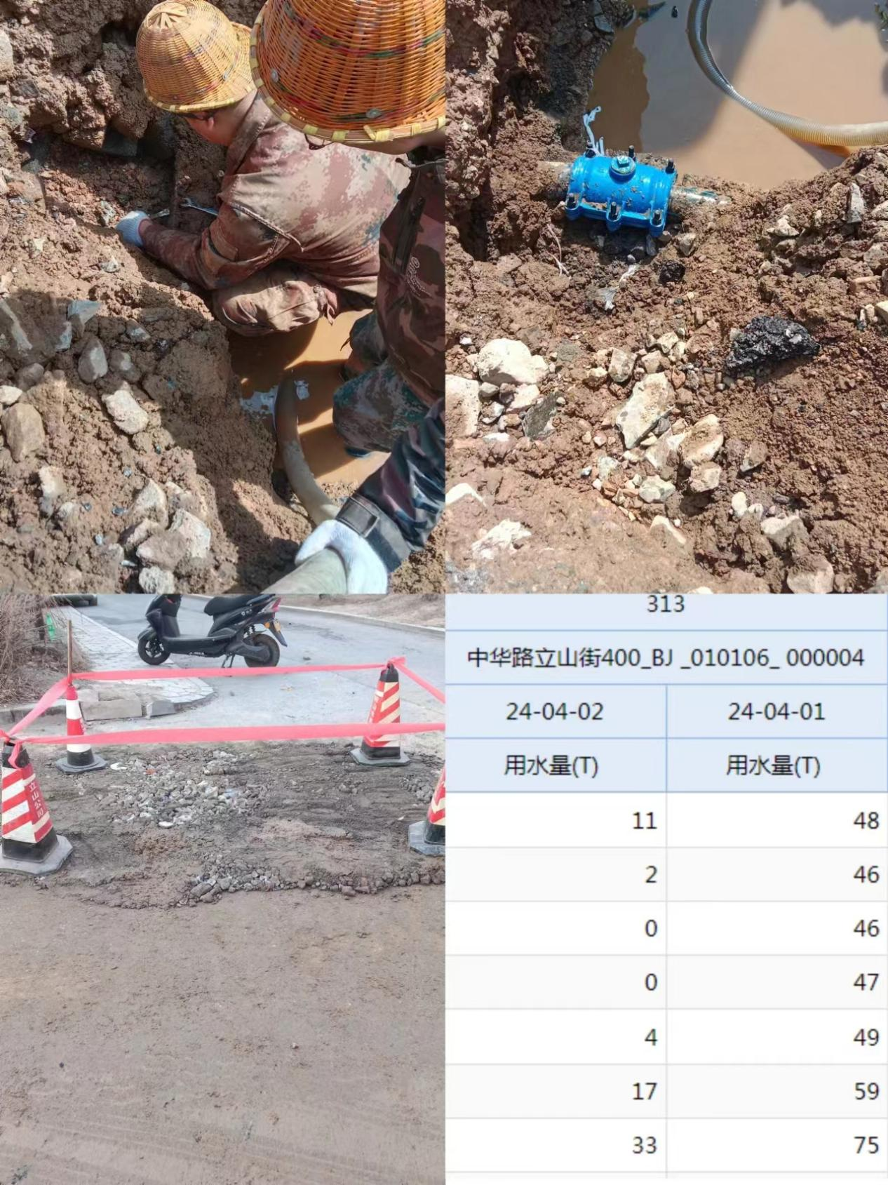 4月1日,通過(guò)集團管網(wǎng)綜合系統發(fā)現,中華路立山街400管線(xiàn)水量突增,所長(cháng)立即組織人員到現場(chǎng)排查情況,通過(guò)閉門(mén)測試和查漏公司的精準定位,確定為二十四中南側PE200管線(xiàn)存在漏水。當即對該處漏水進(jìn)行搶修,修復后次日通過(guò)集團管網(wǎng)綜合系統發(fā)現降低無(wú)效水量45立/小時(shí),日降低1080立/天。