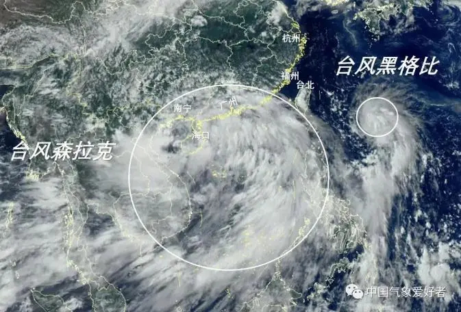 這兩個(gè)臺風(fēng)雖然同年同月同日生,但性格很不一樣。3號臺風(fēng)“森拉克”是大塊頭、慢性子,結構松散4號臺風(fēng)“黑格比”是小個(gè)子、急性子、結構緊湊兩個(gè)臺風(fēng)的路徑也大不相同:3號臺風(fēng)影響華南,4號臺風(fēng)影響華東。