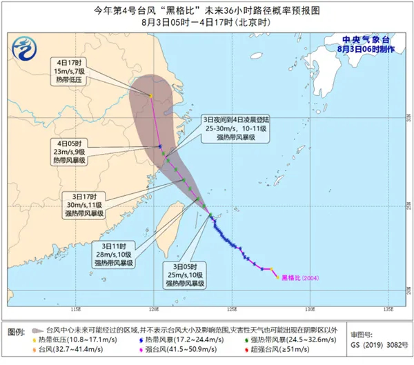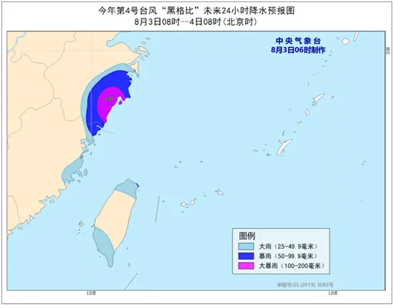 受臺風(fēng)“黑格比”影響,8月3日8時(shí)至4日8時(shí),浙江東南部、福建東北部、臺灣島北部和西南部等地的部分地區有大到暴雨,其中浙江東南部局地大暴雨(100~200毫米)。目前,臺風(fēng)“黑格比”正向我國奔襲而來(lái),預計其強度還將逐漸增強,東南沿海地區需注意臺風(fēng)帶來(lái)的暴雨、大風(fēng)和風(fēng)暴潮對船舶、漁業(yè)養殖、港口和工礦企業(yè)造成的影響,切實(shí)做好防臺風(fēng)工作。