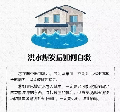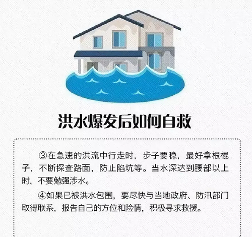 ④徒步涉水,用樹(shù)枝探測水深;如無(wú)法駕車(chē)逃離,要果斷棄車(chē)。