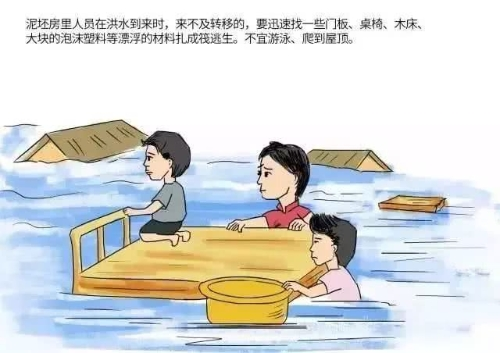 (3)扎筏逃生,勿游泳、爬屋頂。